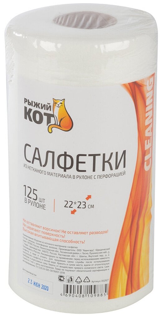 Салфетки из спанлейса в рулоне с перфорацией Рыжий кот, 22 x 23 см, 125 шт