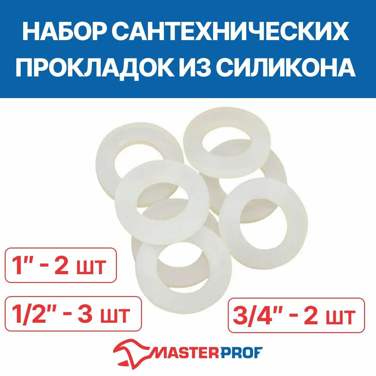 Набор сантехнических прокладок из силикона (1/2" - 3 шт., 3/4" - 2 шт., 1" - 2 шт.)