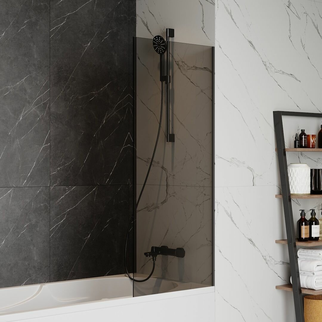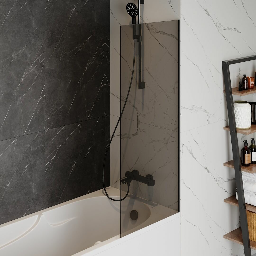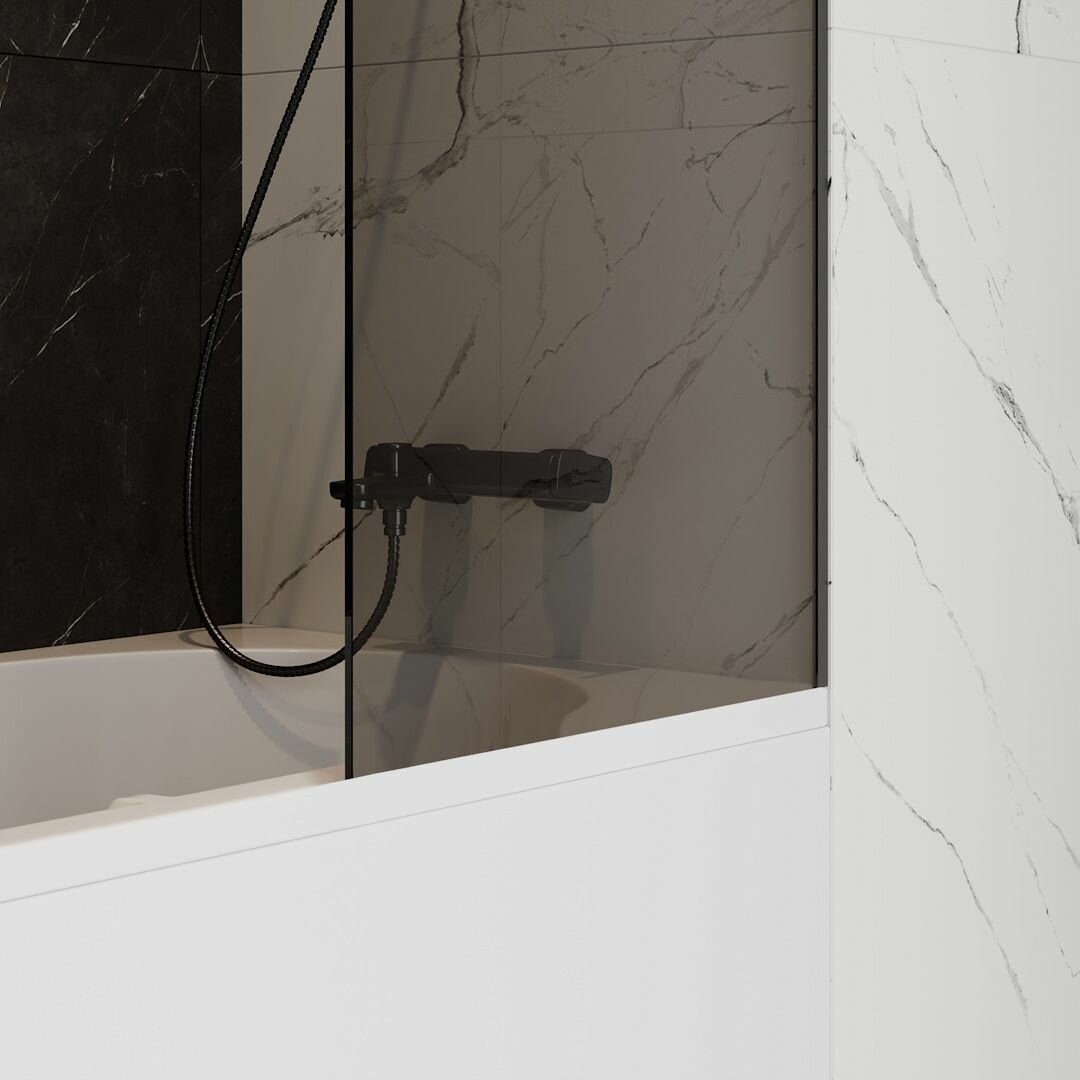 Купить Шторка на ванну стеклянная 60х140 тонированное закаленное стекло профиль черный матовый Teymi Timo S T00272