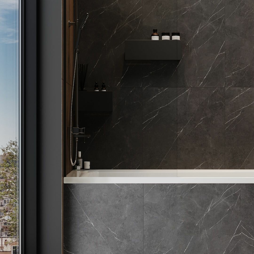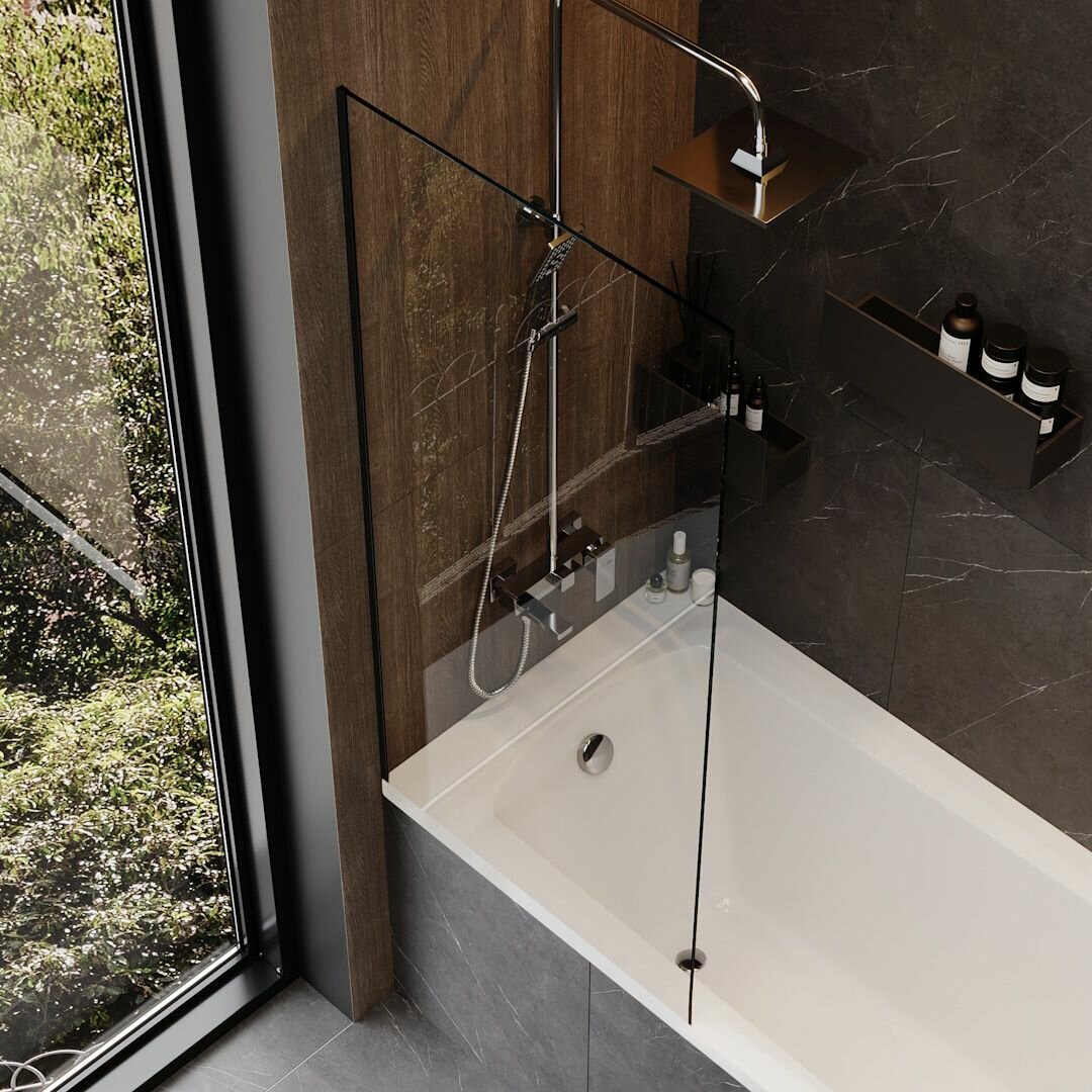 СохранитьШторка на ванну стеклянная 70х140 прозрачное закаленное стекло профиль черный матовый Teymi Timo T00274 интересное: