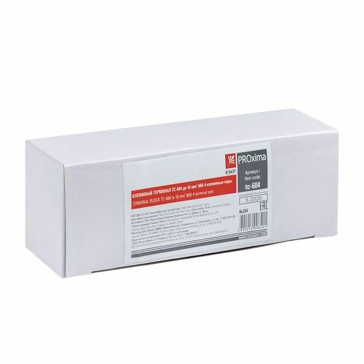 Терминал клеммный TC-604 до 16кв. мм 60А 4 клеммные пары EKF tc-604 интересное: