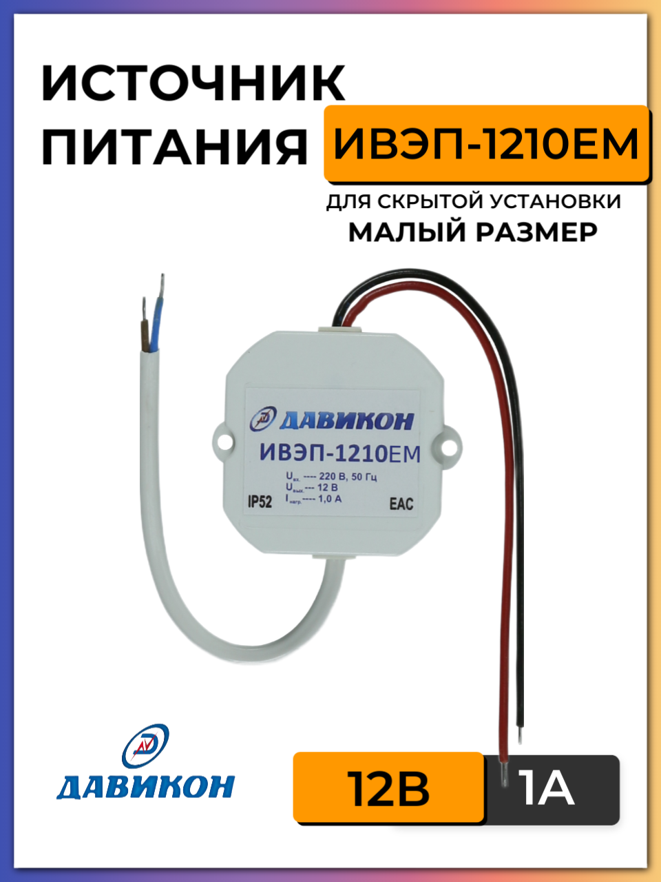 ИВЭП-1210ЕМ Блок питания стабилизированный 12В 1А, скрытая установка в подрозетник Давикон интересное: