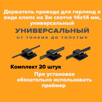 Держатель провода для гирлянд в виде клипс на 3м скотче 14х14 мм, универсальный , аксессуары для автомобиля. интересное: