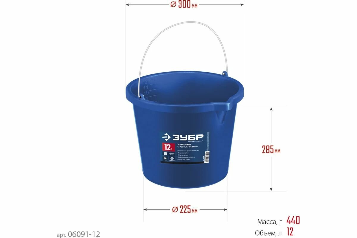 Усиленное строительное ведро ЗУБР 12 л, первичный высокопрочный пластик, с носиком, Профессионал (06091-12) интересное:
