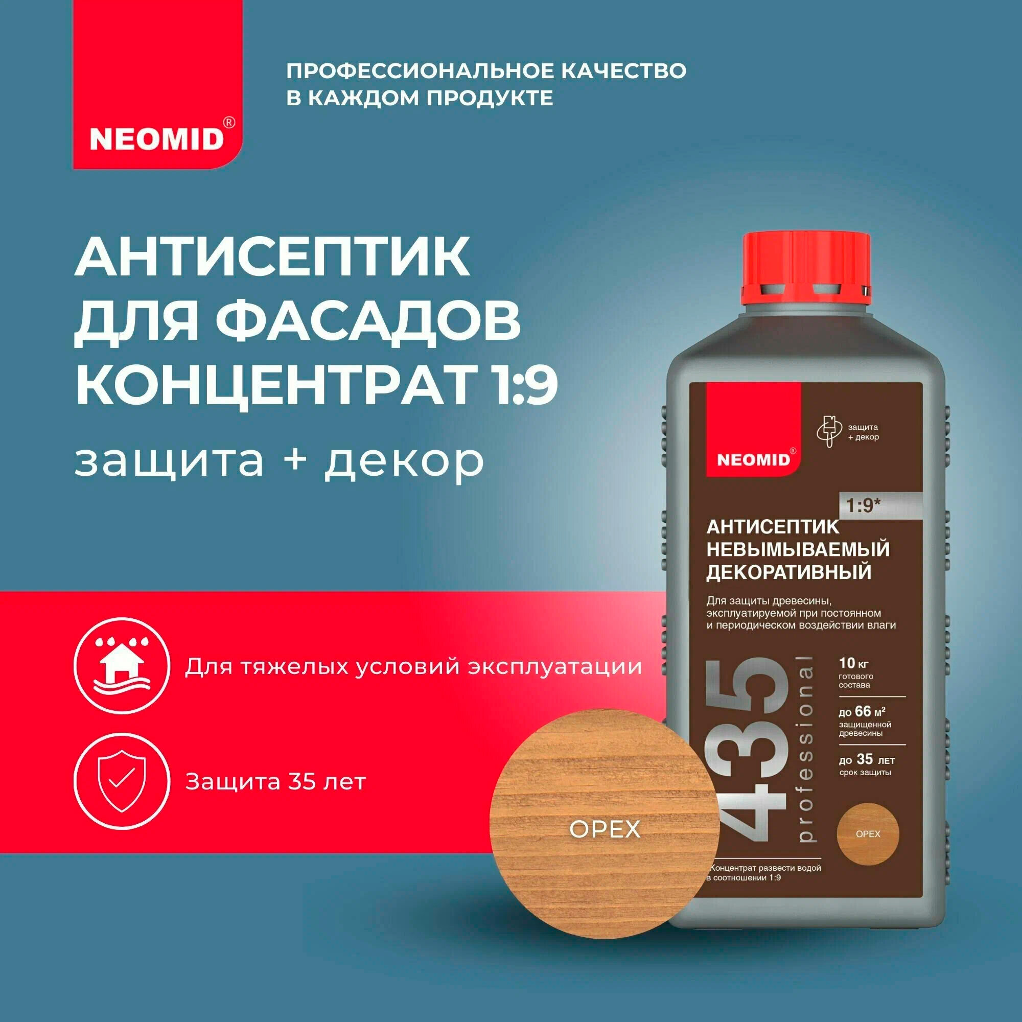 NEOMID 435 антисептик невымываемый декоративный, защита до 35 лет, концентрат 1:9, коричневый (1 л) (Неомид )