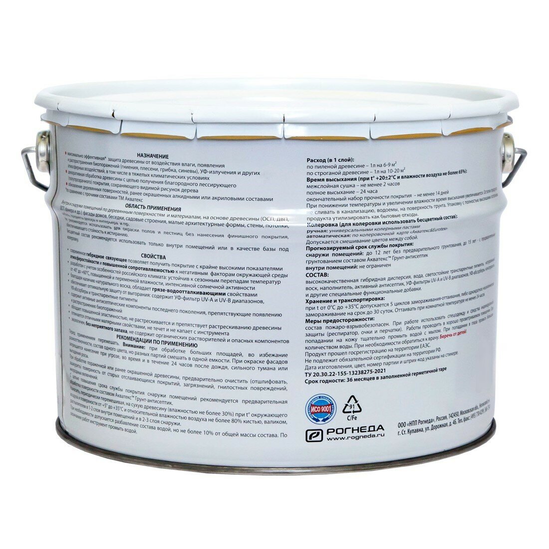 Антисептик для дерева Akvateks Hybrid, лессирующий, 9 л, белый