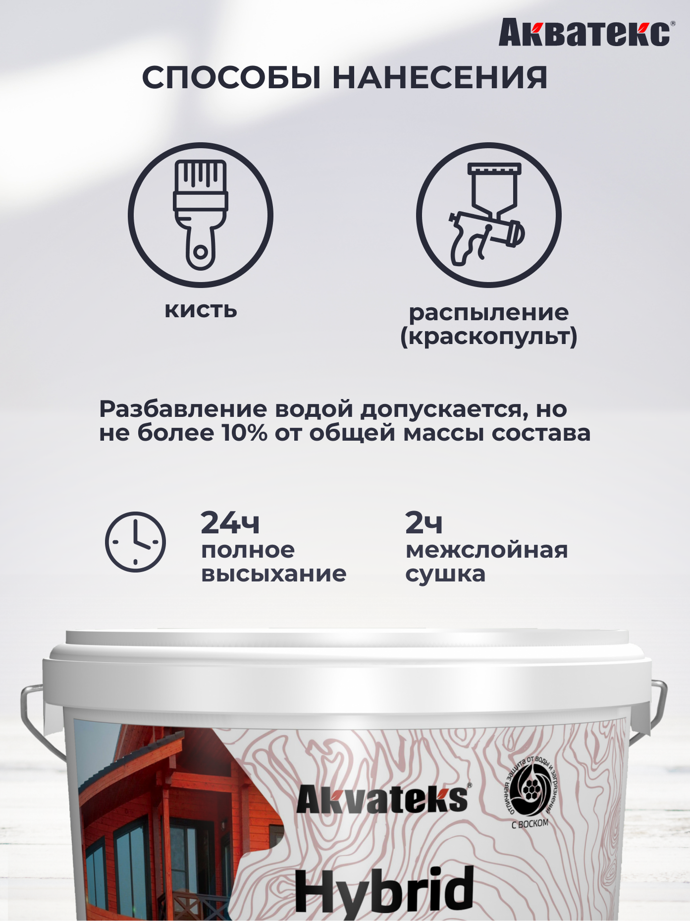 Антисептик для дерева Akvateks Hybrid, лессирующий, 2,5 л, бесцветный
