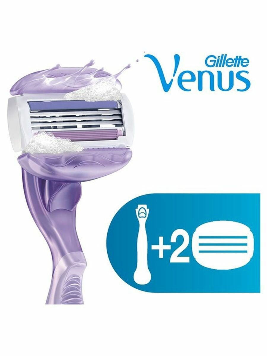 Venus Сменные кассеты для бритвы Venus Breeze со встроенными полосками с гелем для бритья, 2 шт., с 2 сменными лезвиями в комплекте
