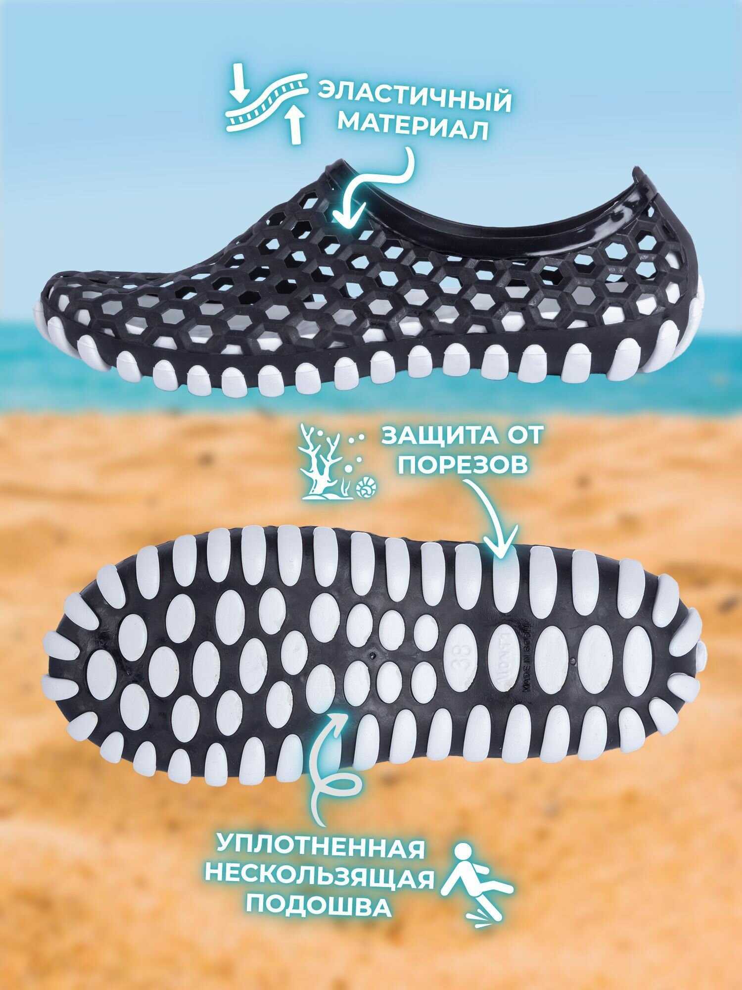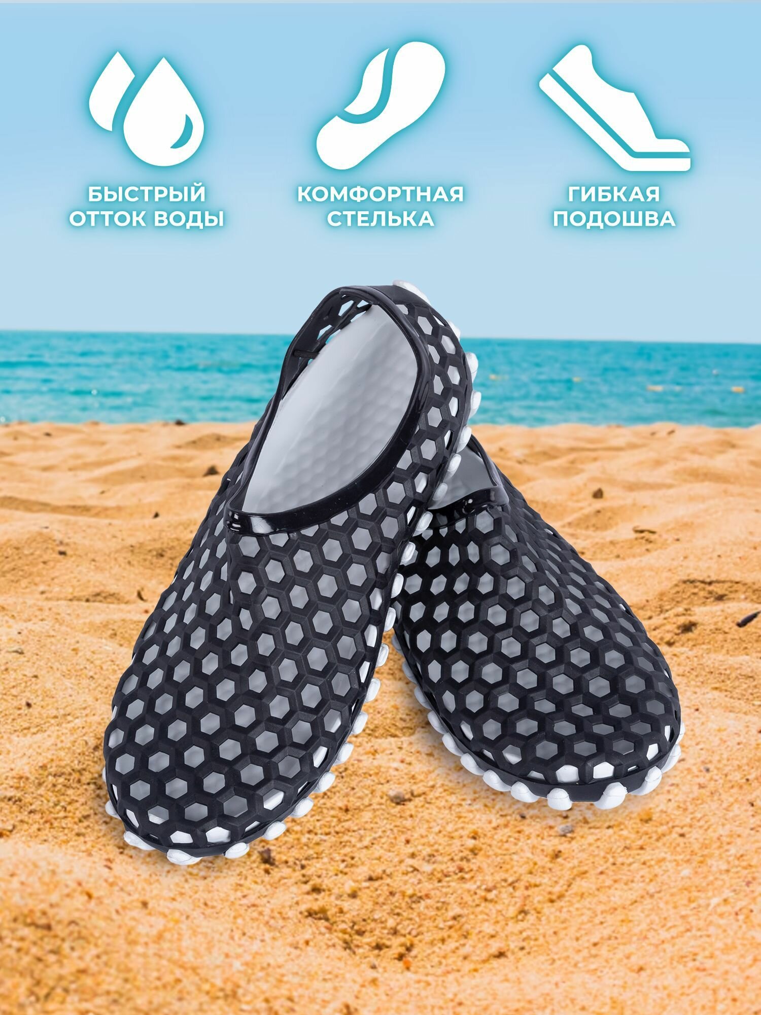 Акваобувь , размер 41, черный/белый