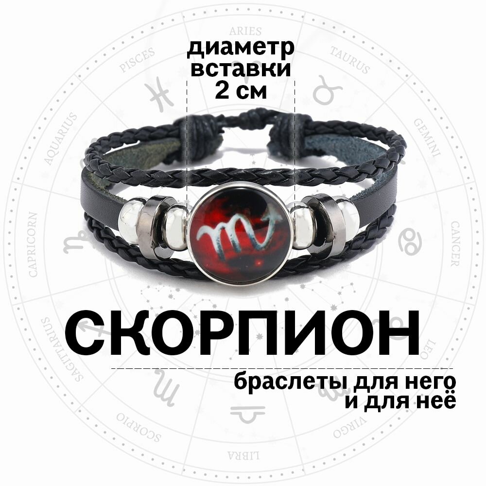 Браслет кожаный Croco Gifts знак зодиака "Скорпион" с регулировкой размера