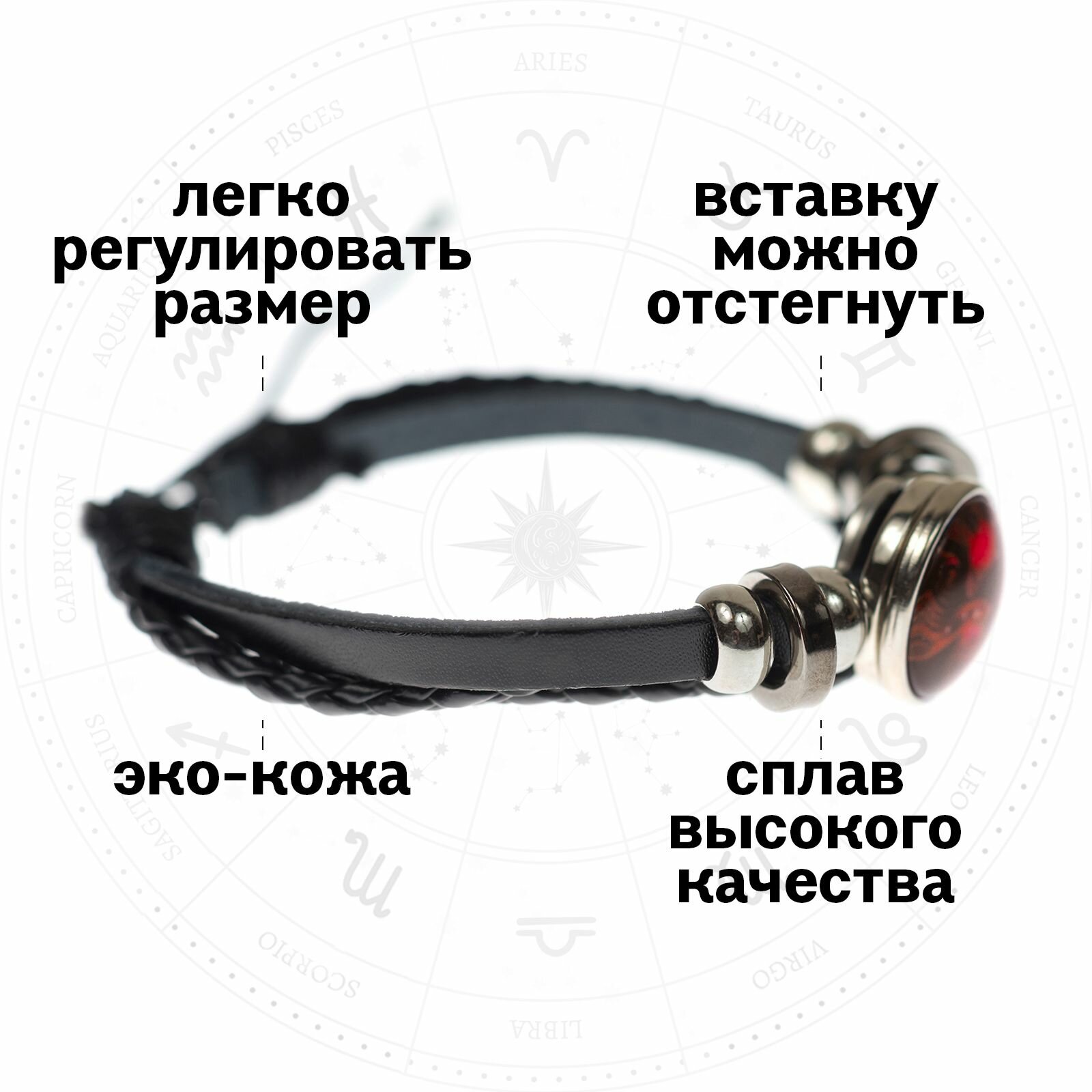 Браслет Croco Gifts знак зодиака "Лев", кожаный, с регулировкой размера