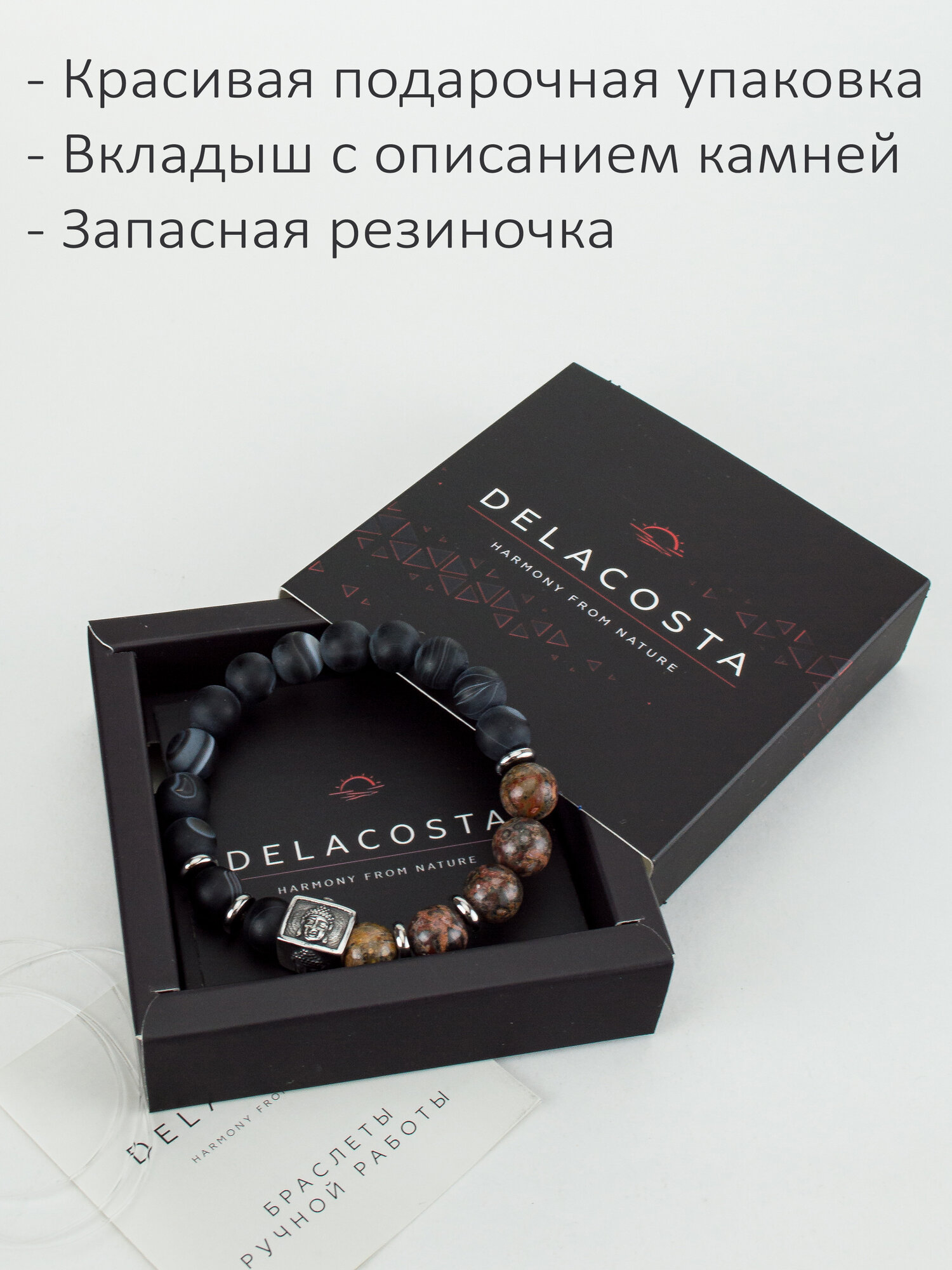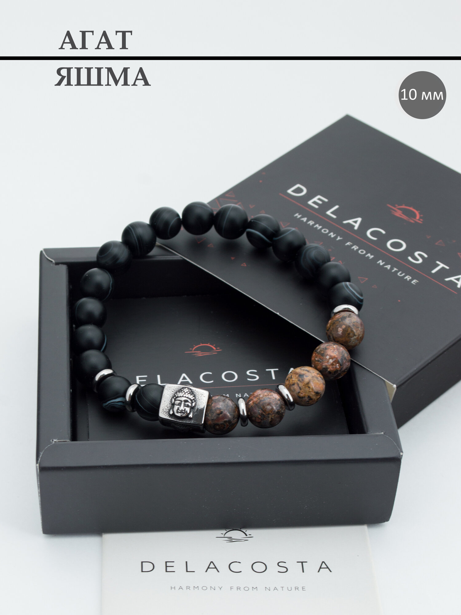 Купить Браслет DELACOSTA, агат, яшма, 1 шт., размер 19 см, размер L, черный, коричневый