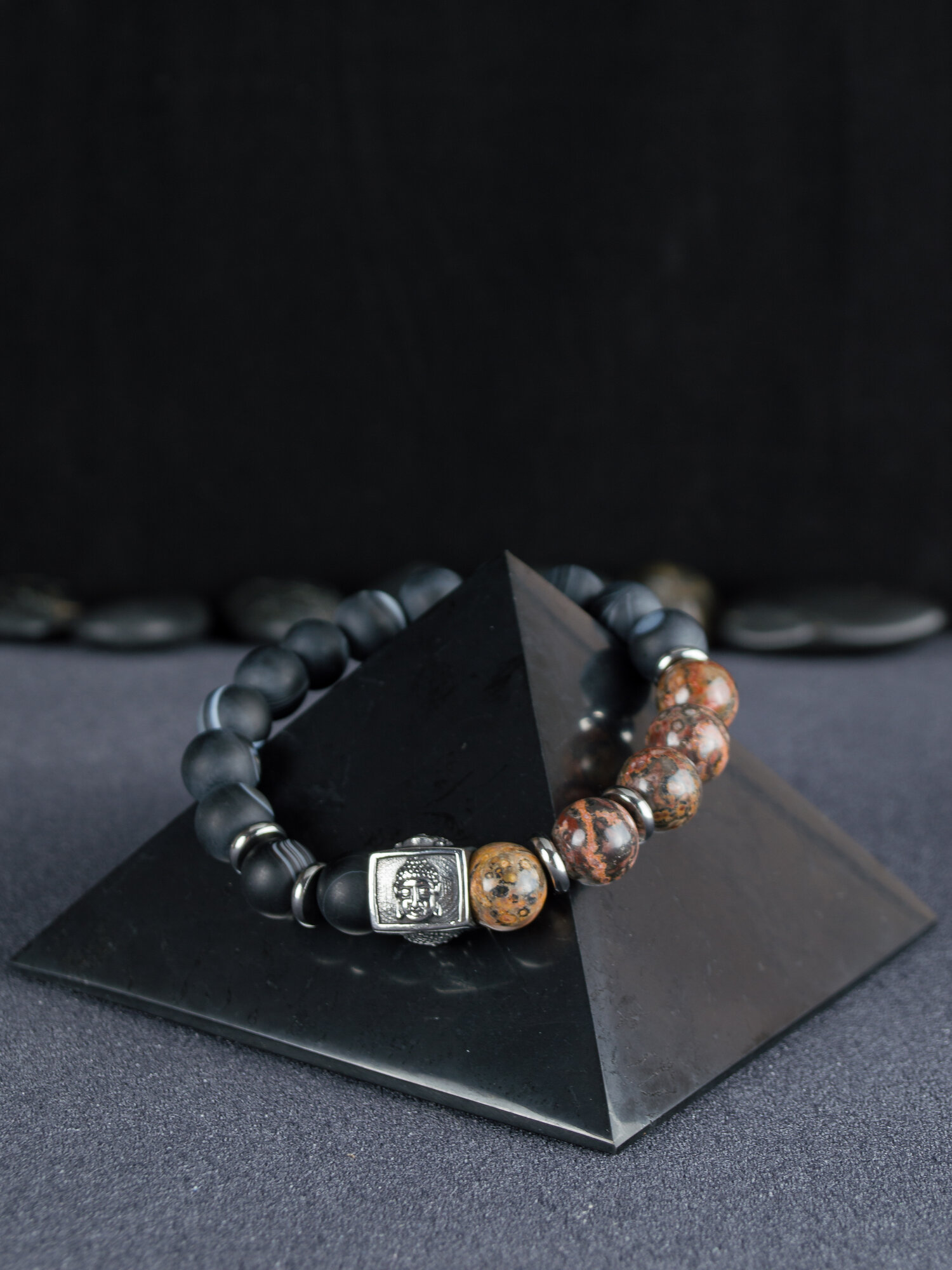 Браслет DELACOSTA, агат, яшма, 1 шт., размер 22 см, черный, коричневый