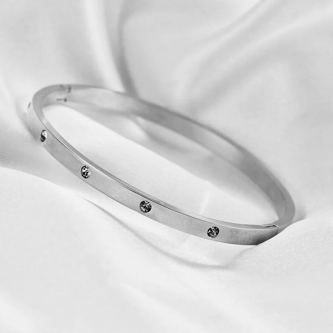 Купить Жесткий браслет SORONA, кристаллы Swarovski, циркон синтетический, фианит, кристалл, Swarovski Zirconia, циркон, 1 шт., размер 6 см, размер one size, диаметр 5.7 см, серебристый