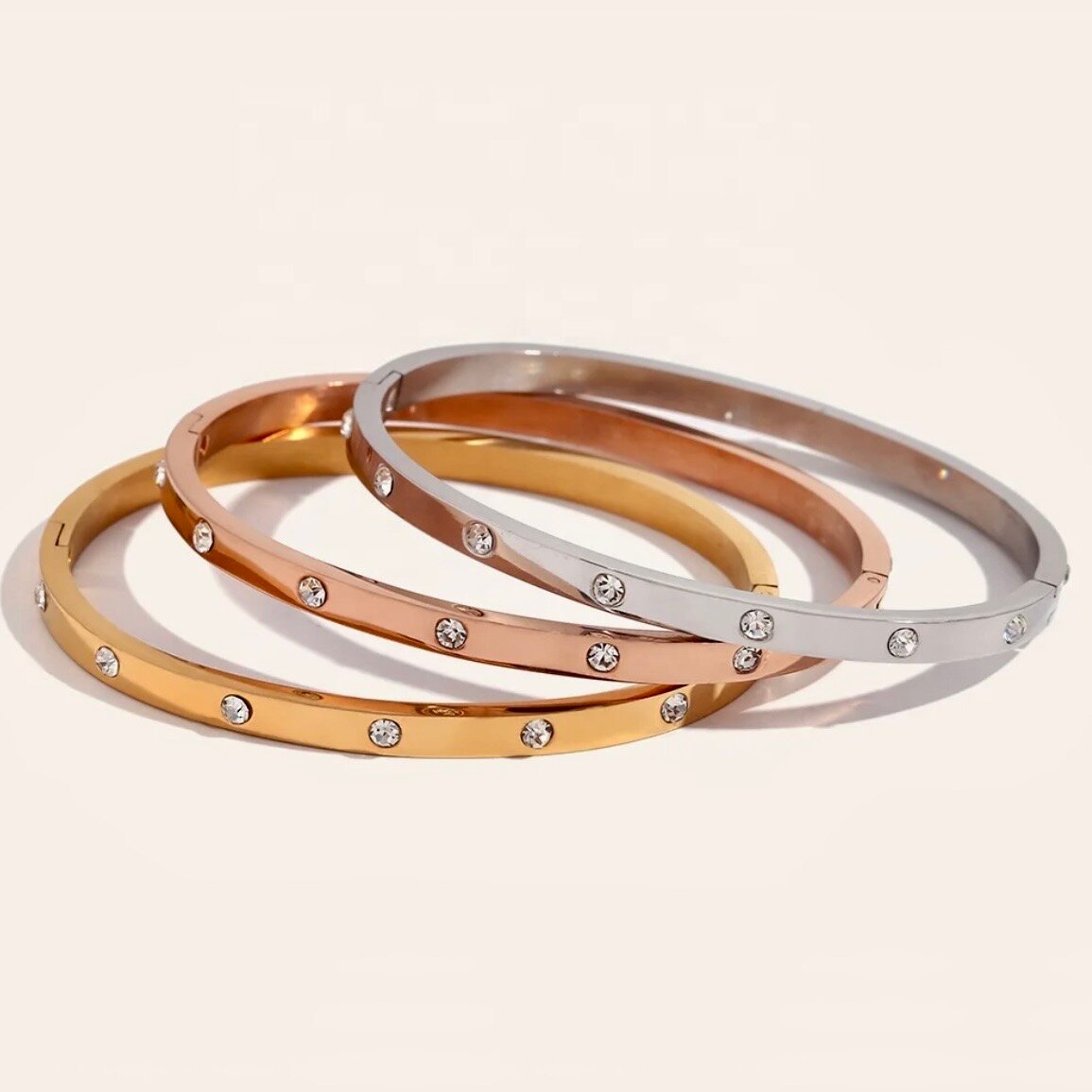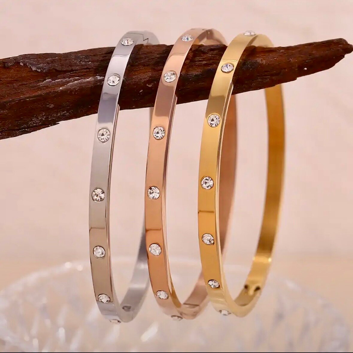 Купить Жесткий браслет SORONA, кристаллы Swarovski, циркон синтетический, фианит, кристалл, Swarovski Zirconia, циркон, 1 шт., размер 6 см, размер one size, диаметр 5.7 см, золотой