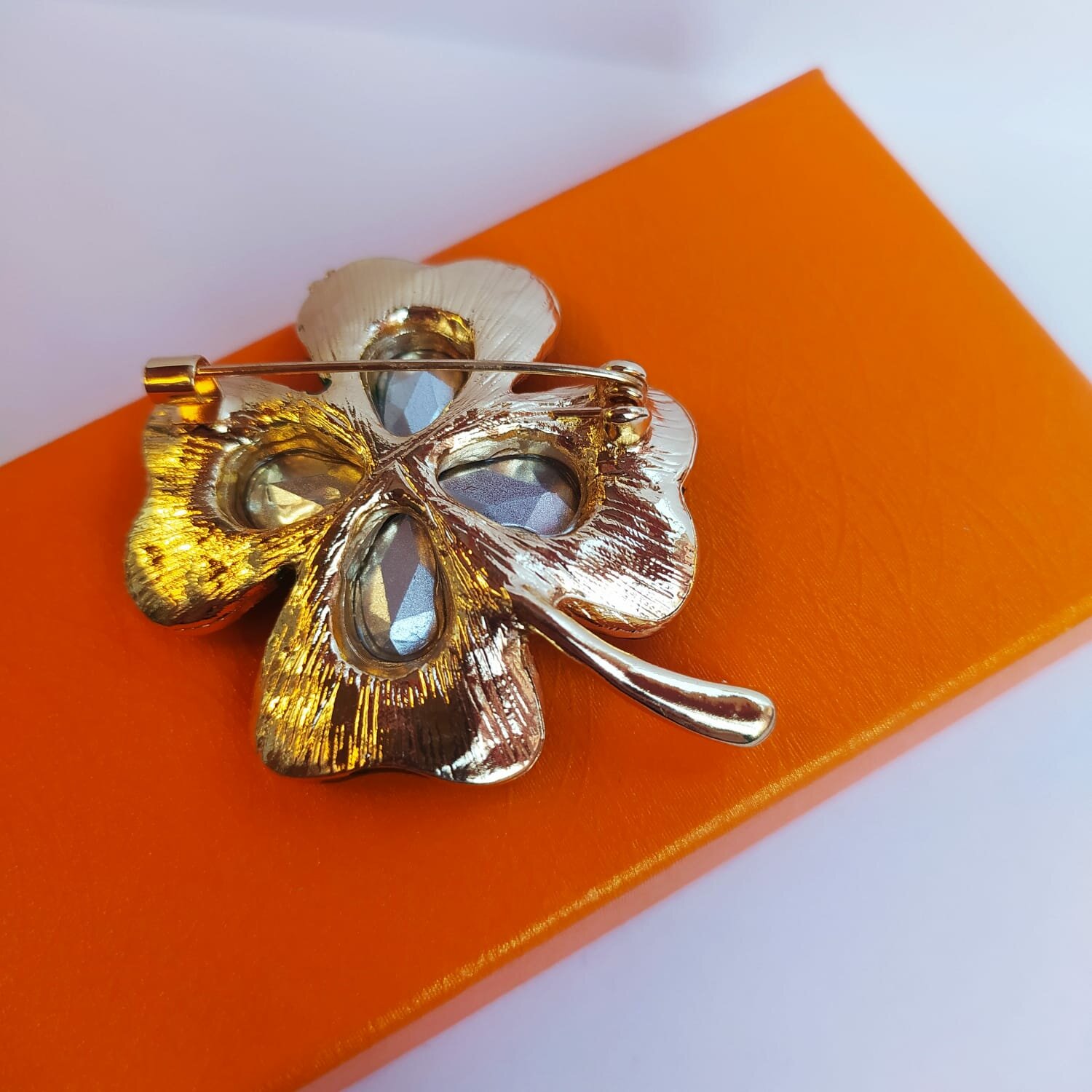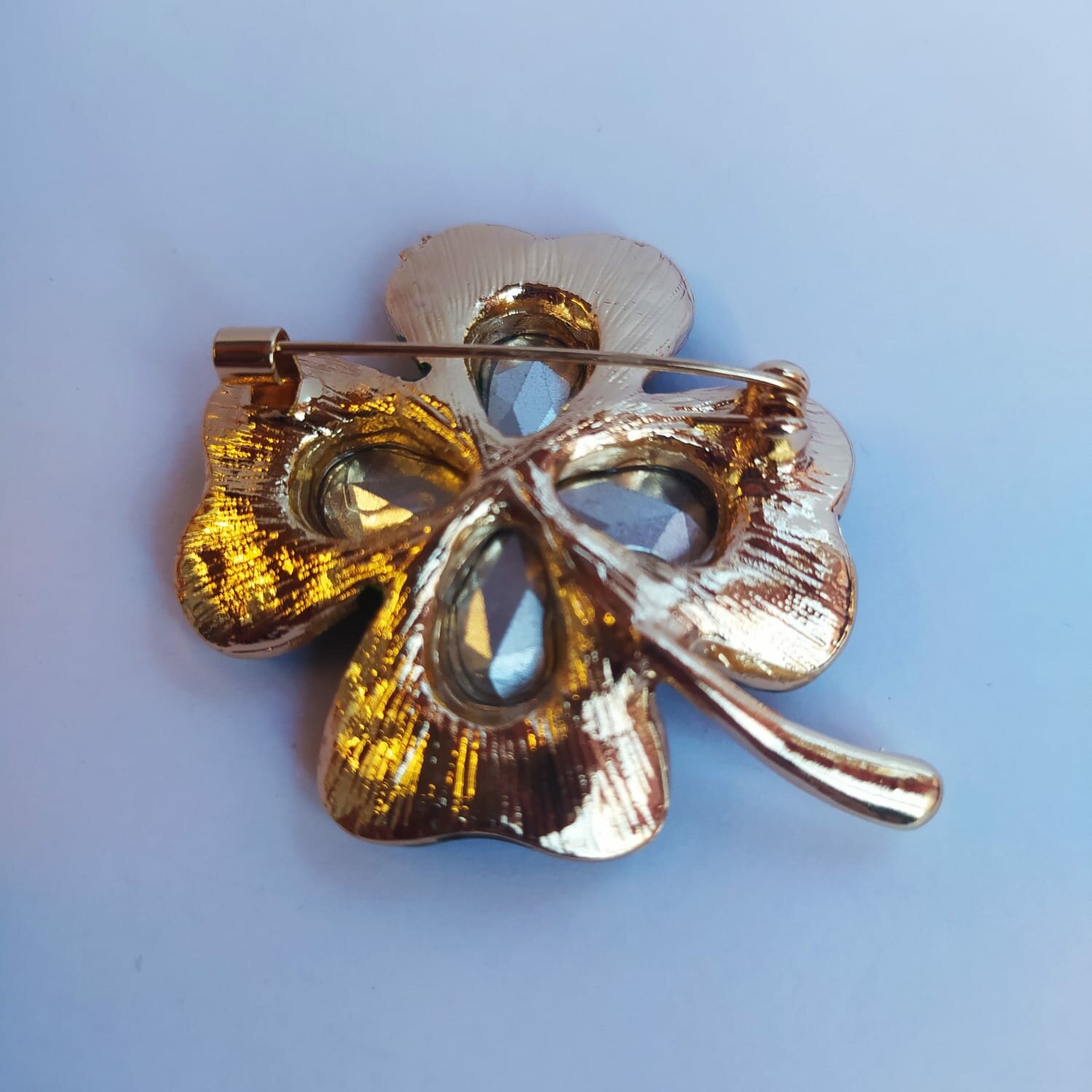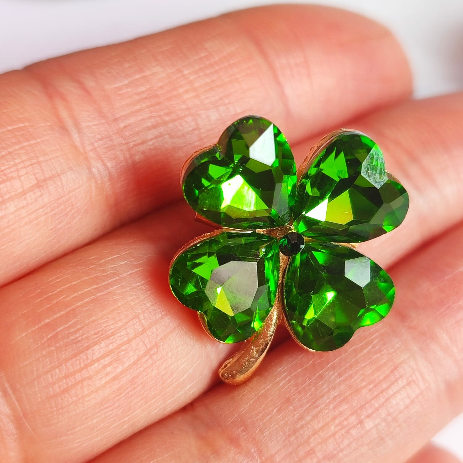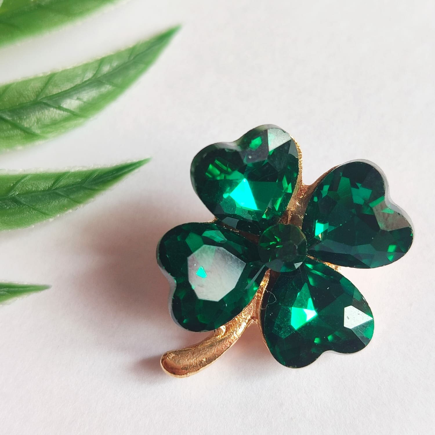 Славянский оберег, брошь Queen Fair Брошь "Четырехлистный клевер", стразы, стекло, зеленый