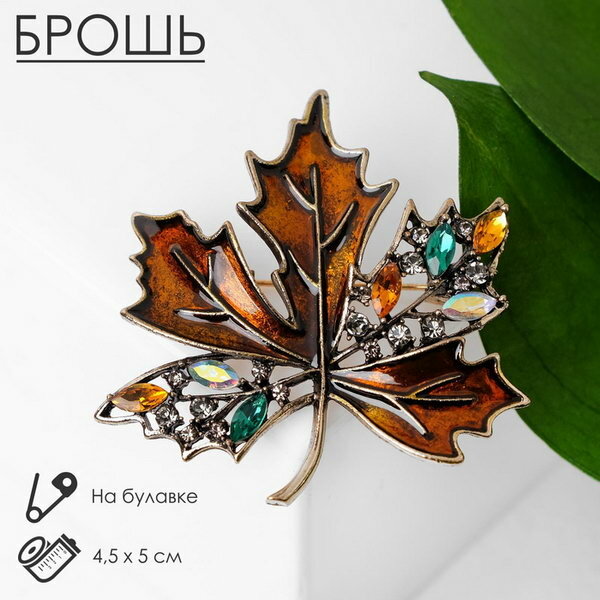 | Комплектация | Брошь "Лист кленовый" стеклянный, цвет зелёный в кофейном золоте |