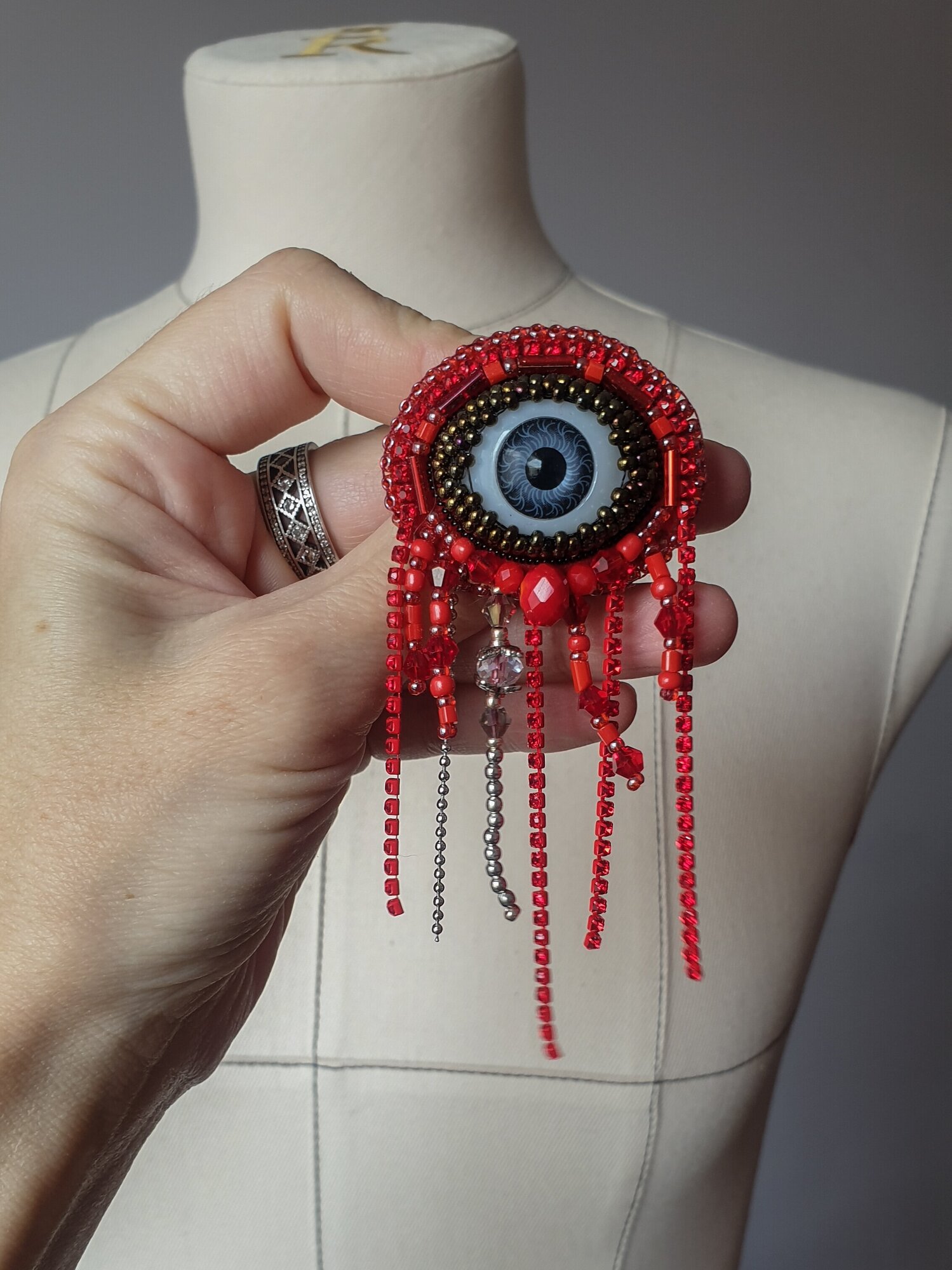 Брошь из бисера ручной работы Глаз Бога. Глазное яблоко. Бижутерия украшения premium для женщин.