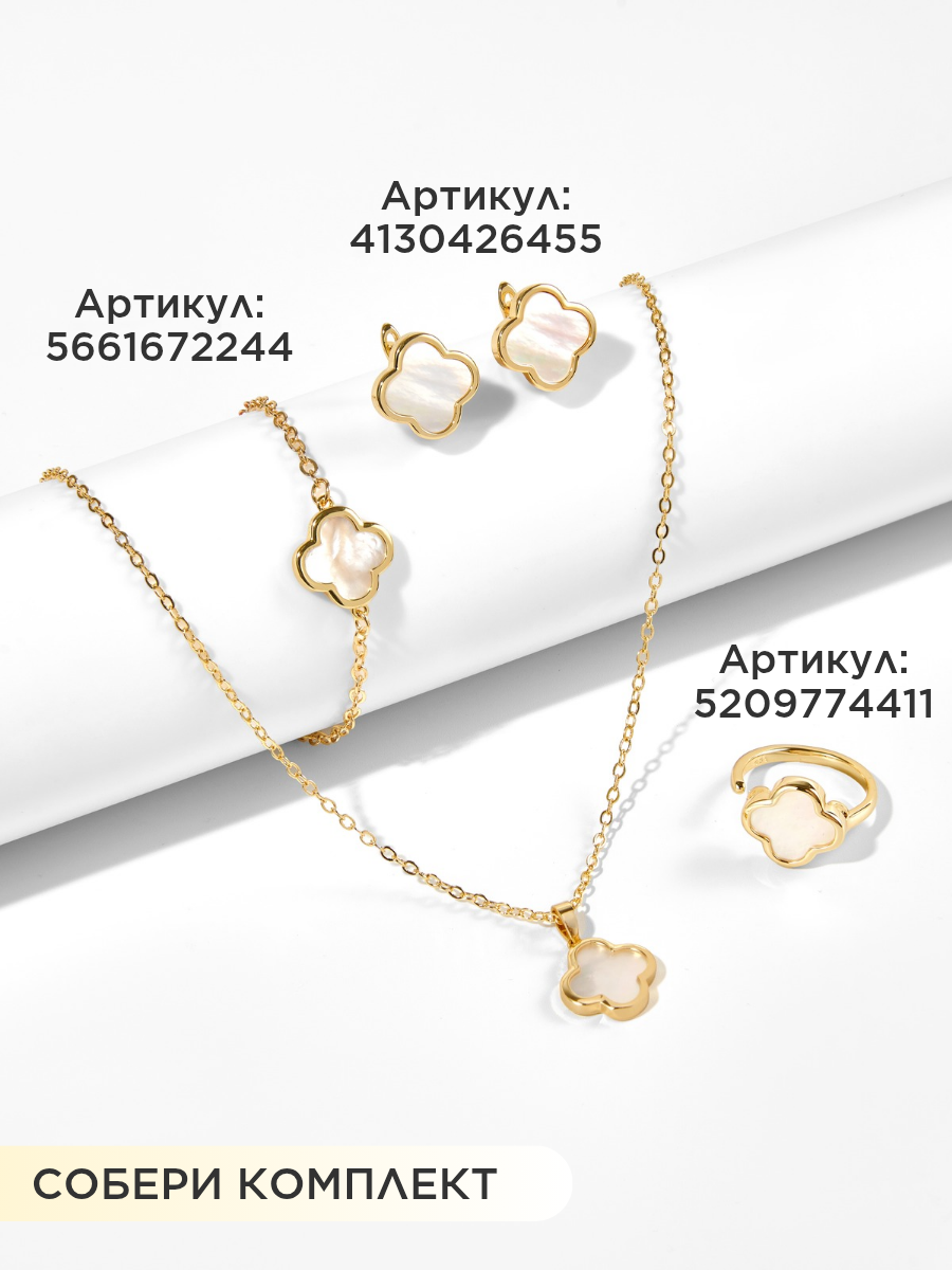 Колье-цепочка женская со съемной подвеской "клевер" из натурального перламутра 50 см NOIMA