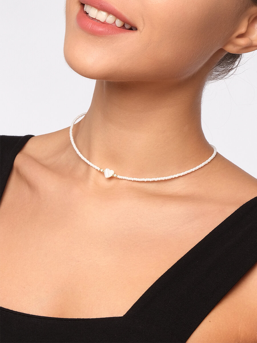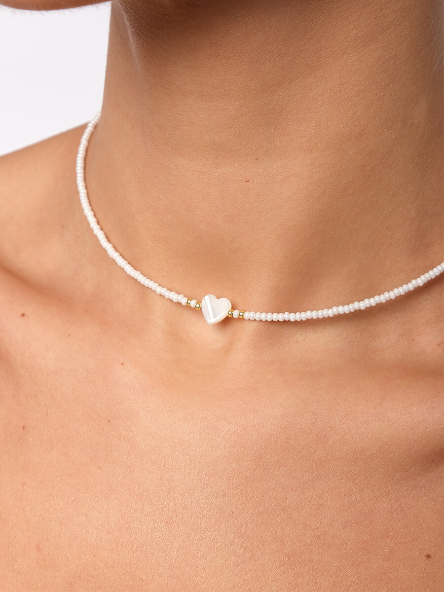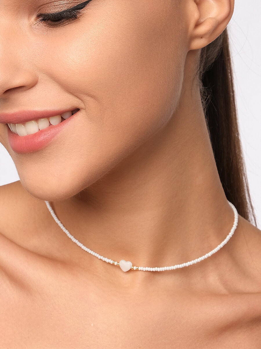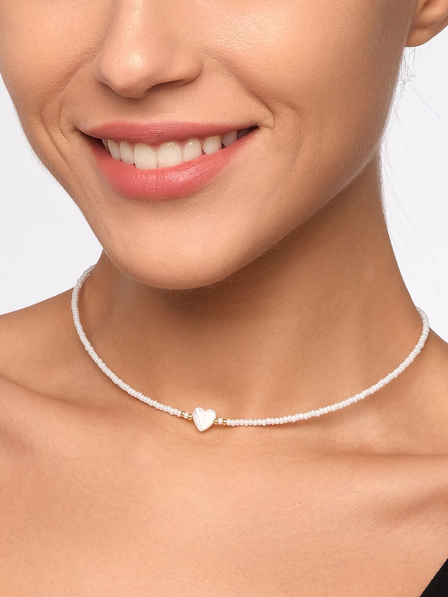 Чокер из белого жемчужного бисера с сердечком из перламутра