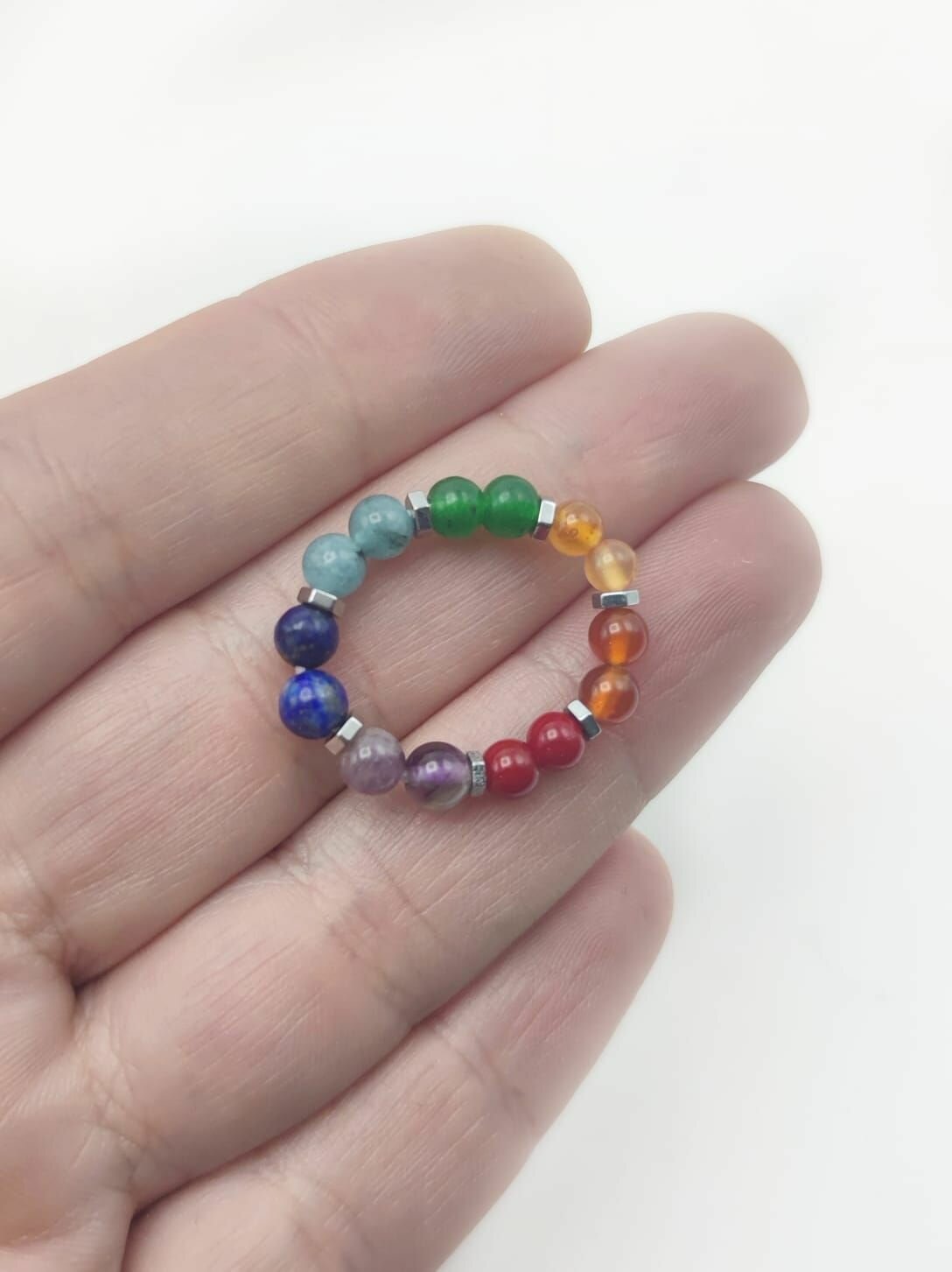 Кольцо Семь чакр из натуральных камней на резинке 20 размер Hrustalek