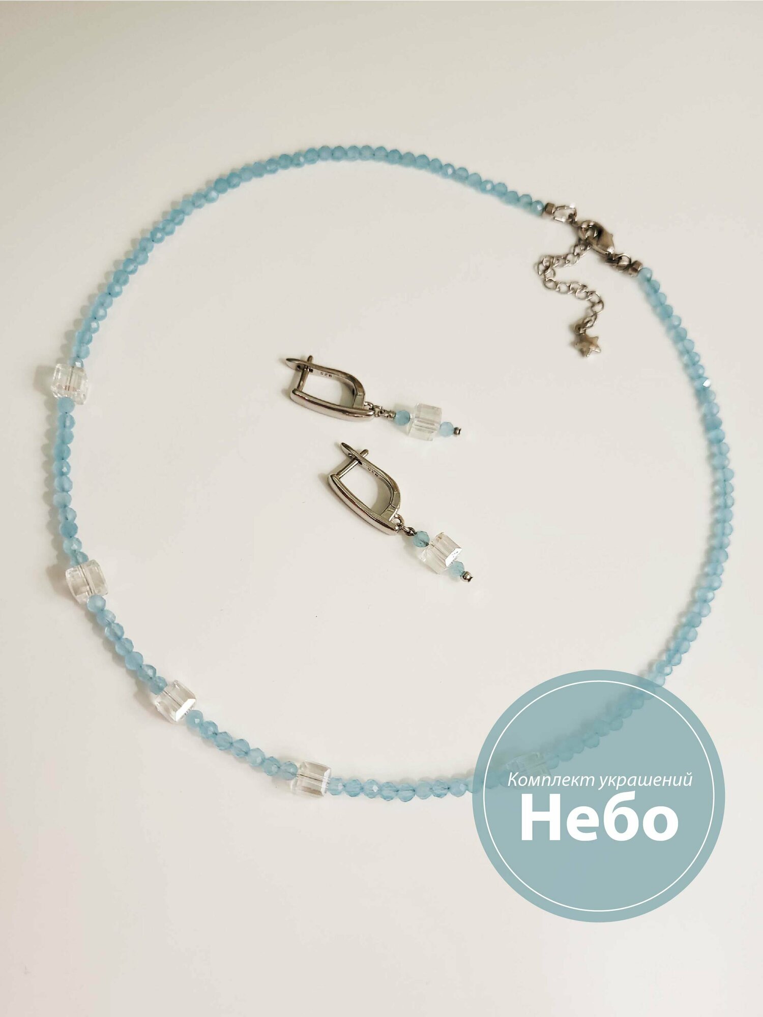Комплект бижутерии Лидия Маслакова. Бижутерия с любовью: чокер, серьги, стекло, серебряный, голубой, бесцветный, белый интересное: