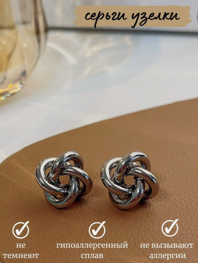 Серьги / квадратные серьги / серьги кольца / женские серьги