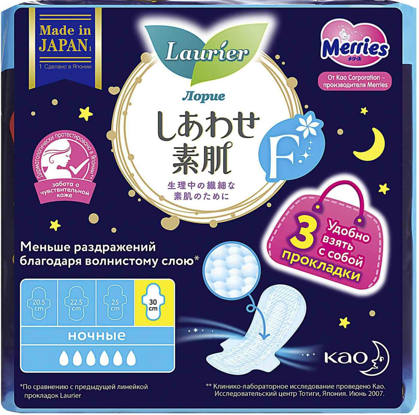 Прокладки гигиенические Laurier F ночные с крылышками 30 см, 3 шт.