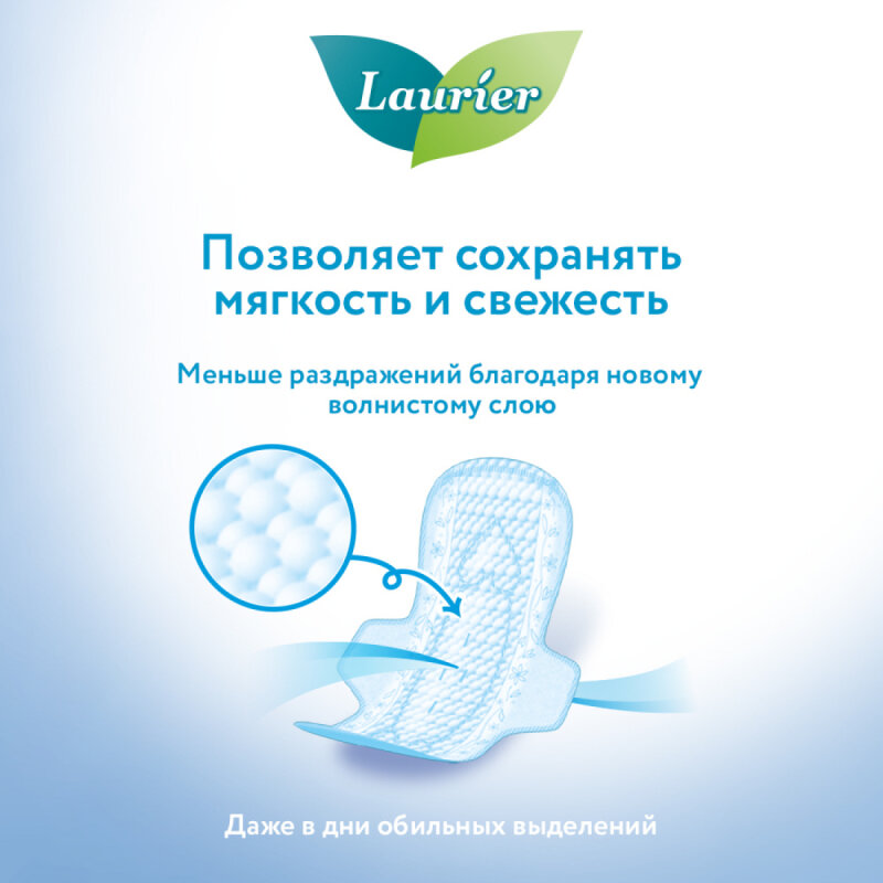 Laurier ночные тонкие гигиенические прокладки с крылышками 30 см, 6 капель, 10 шт