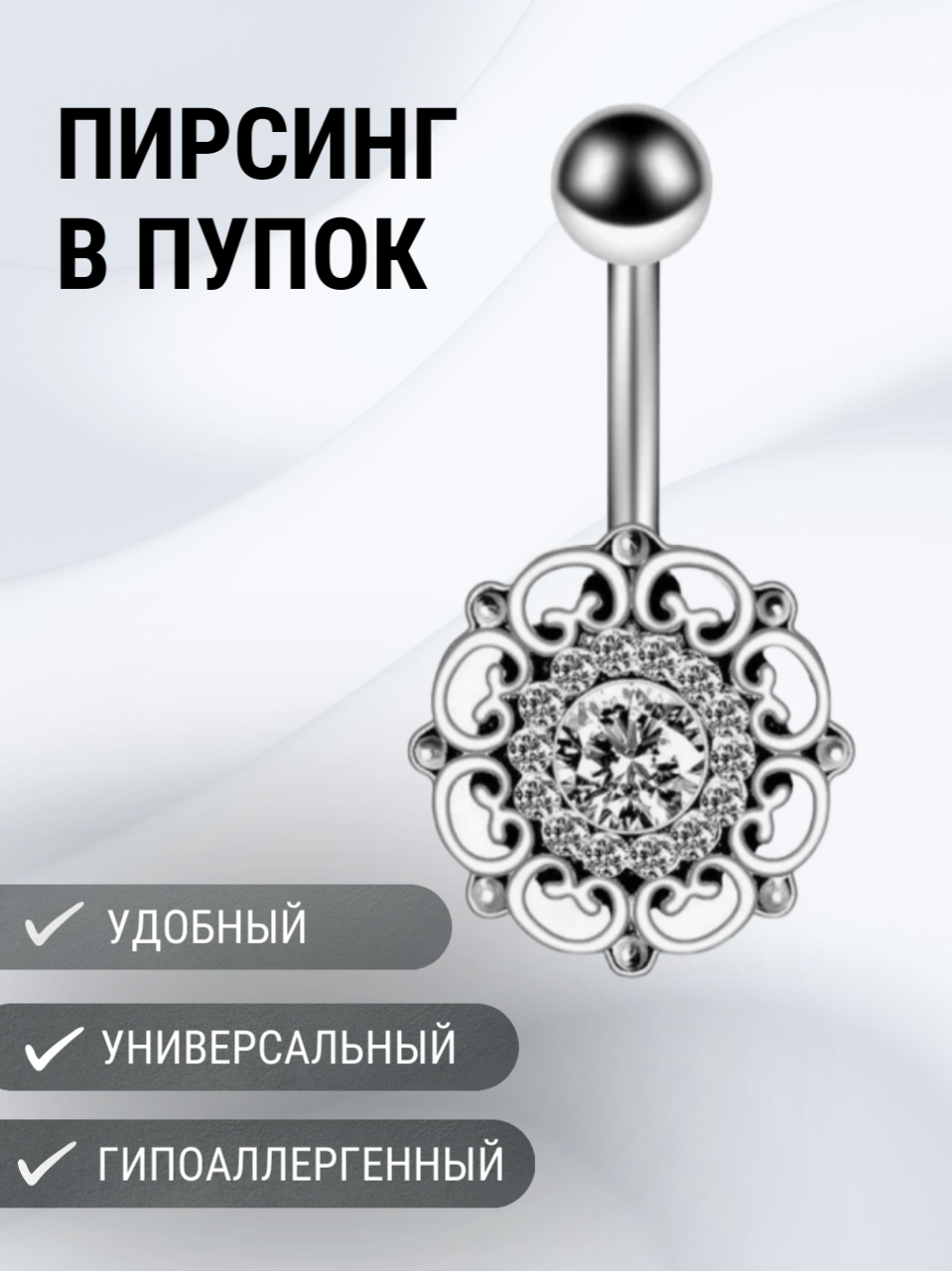 Пирсинг в пупок KIRUNJA, серый интересное: