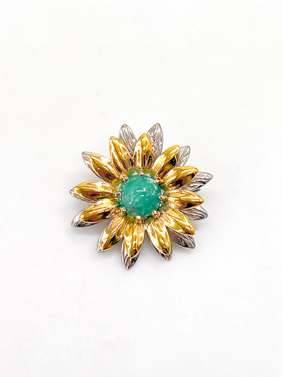 Брошь Кристалл Мечты, серебро, 925 проба, золочение, изумруд интересное: