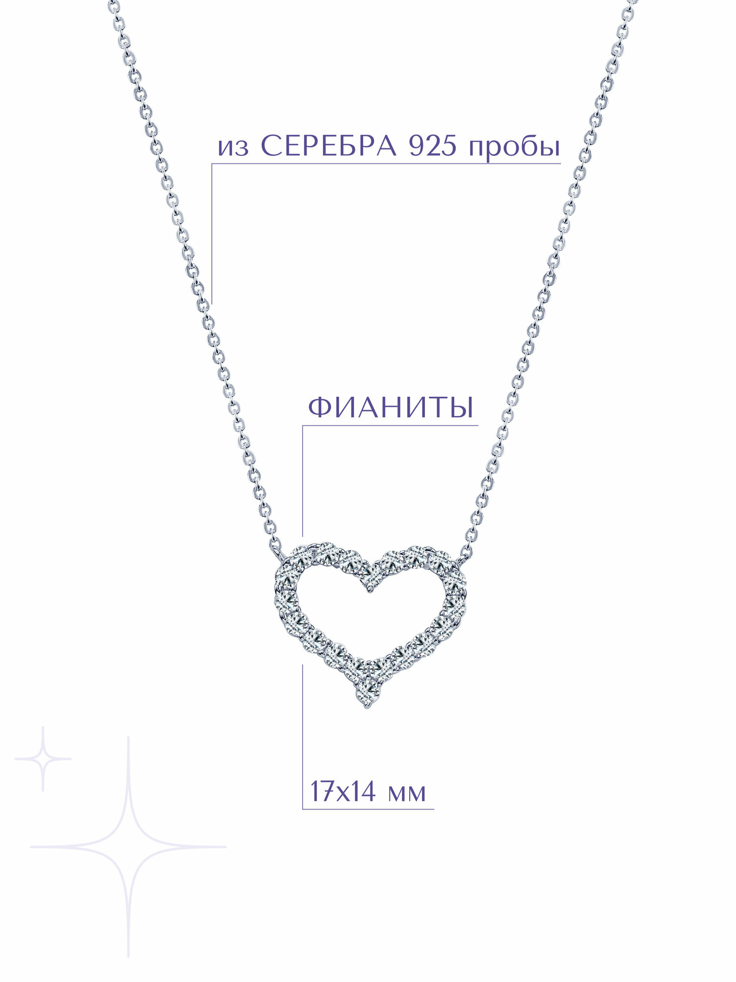 Подвеска MIESTILO на шею женская серебро сердце с фианитами