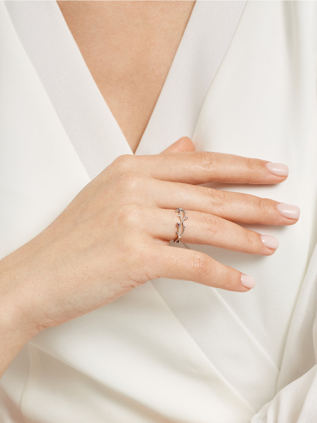 Кольцо серебро 925 женское BRAU Веточка с натуральными родолитами, размер 17.5