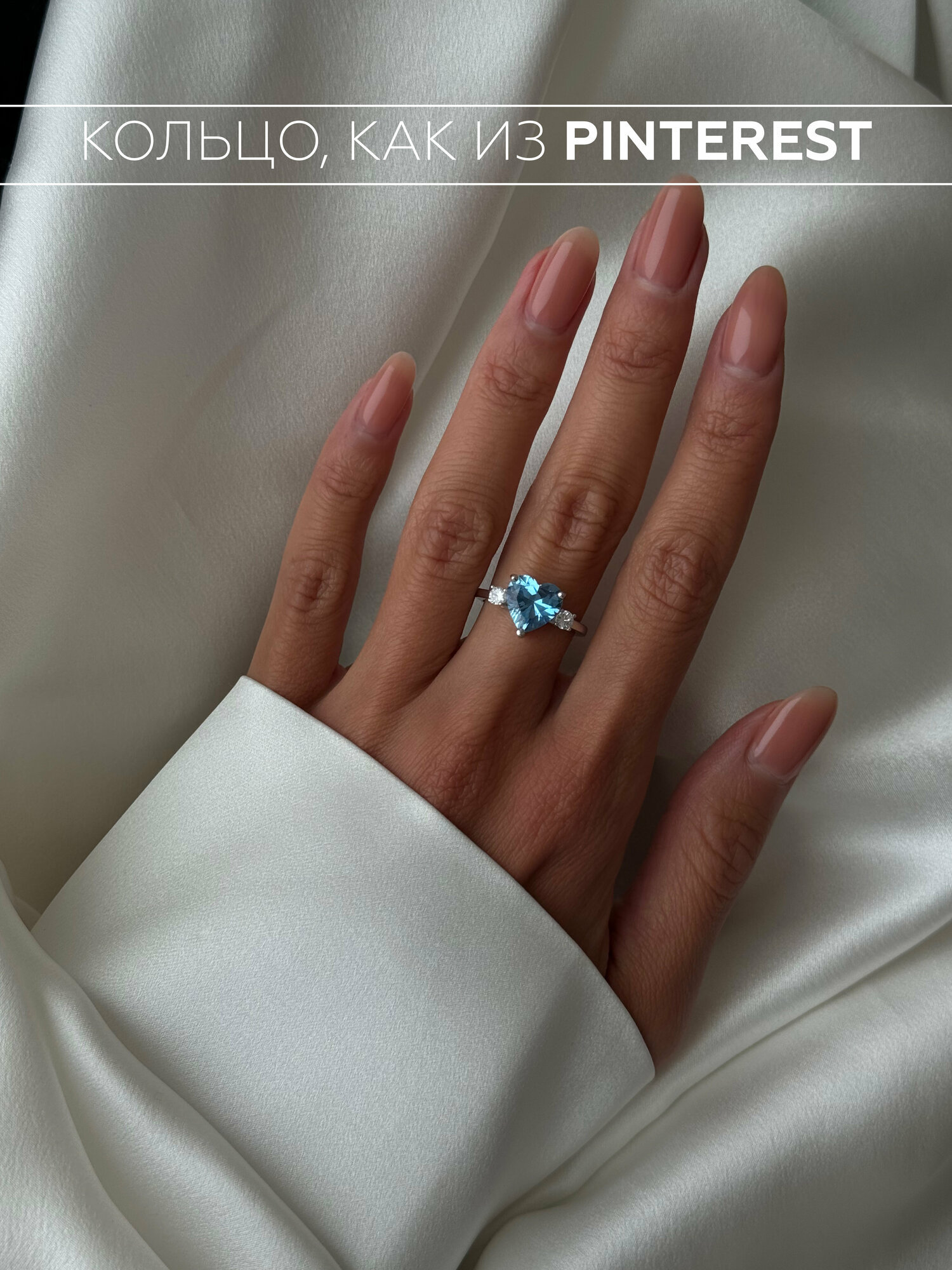 Кольцо MIESTILO серебро 925 женские, ювелирное с крупным камнем сердце, 18 размер