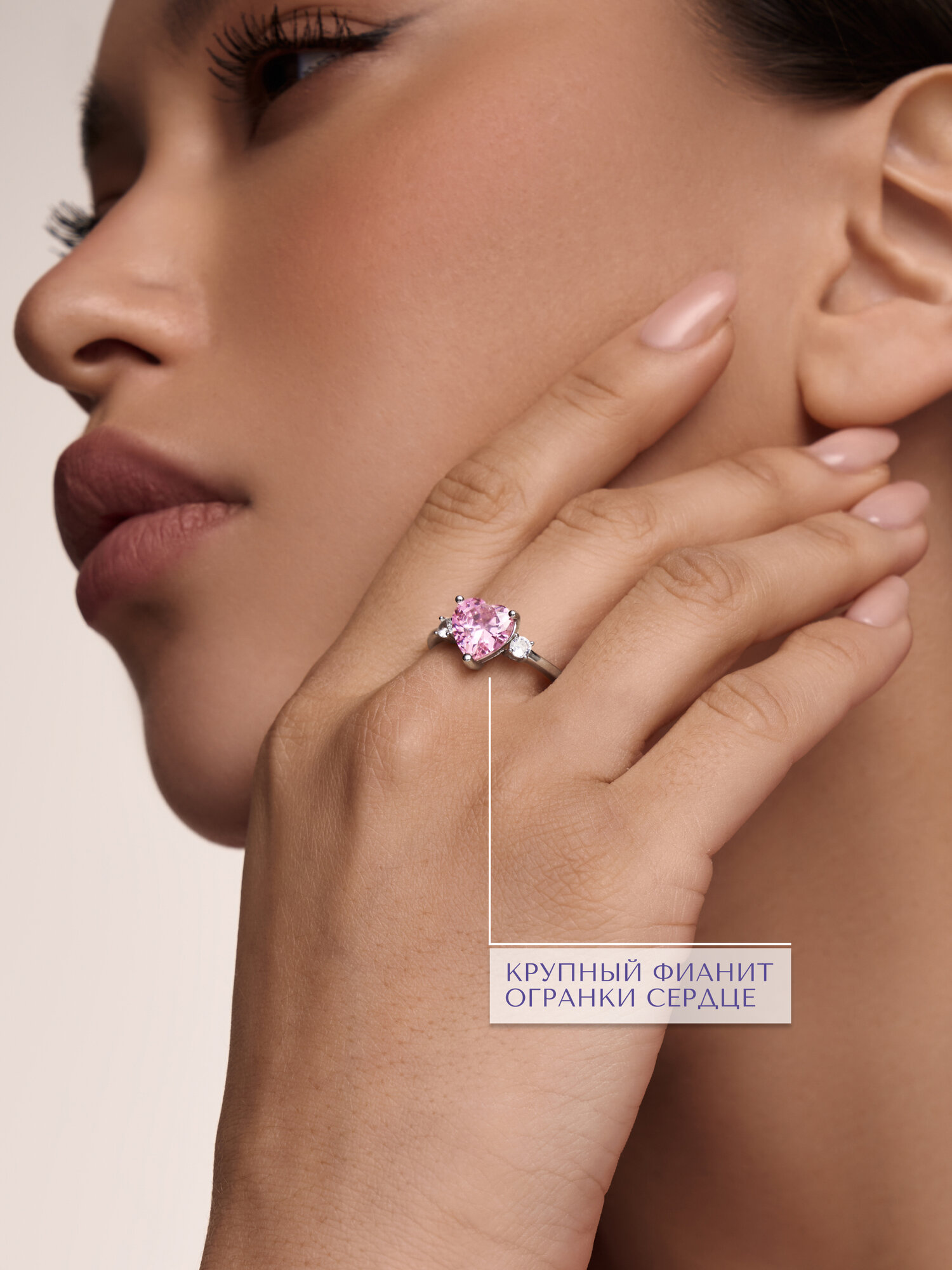 | Дополнительная информация | Ширина кольца составляет 1 мм. Размер розового фианита: 9*9 мм. Диаметр белых фианитов: 3 мм. |