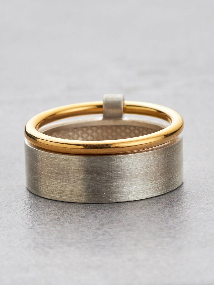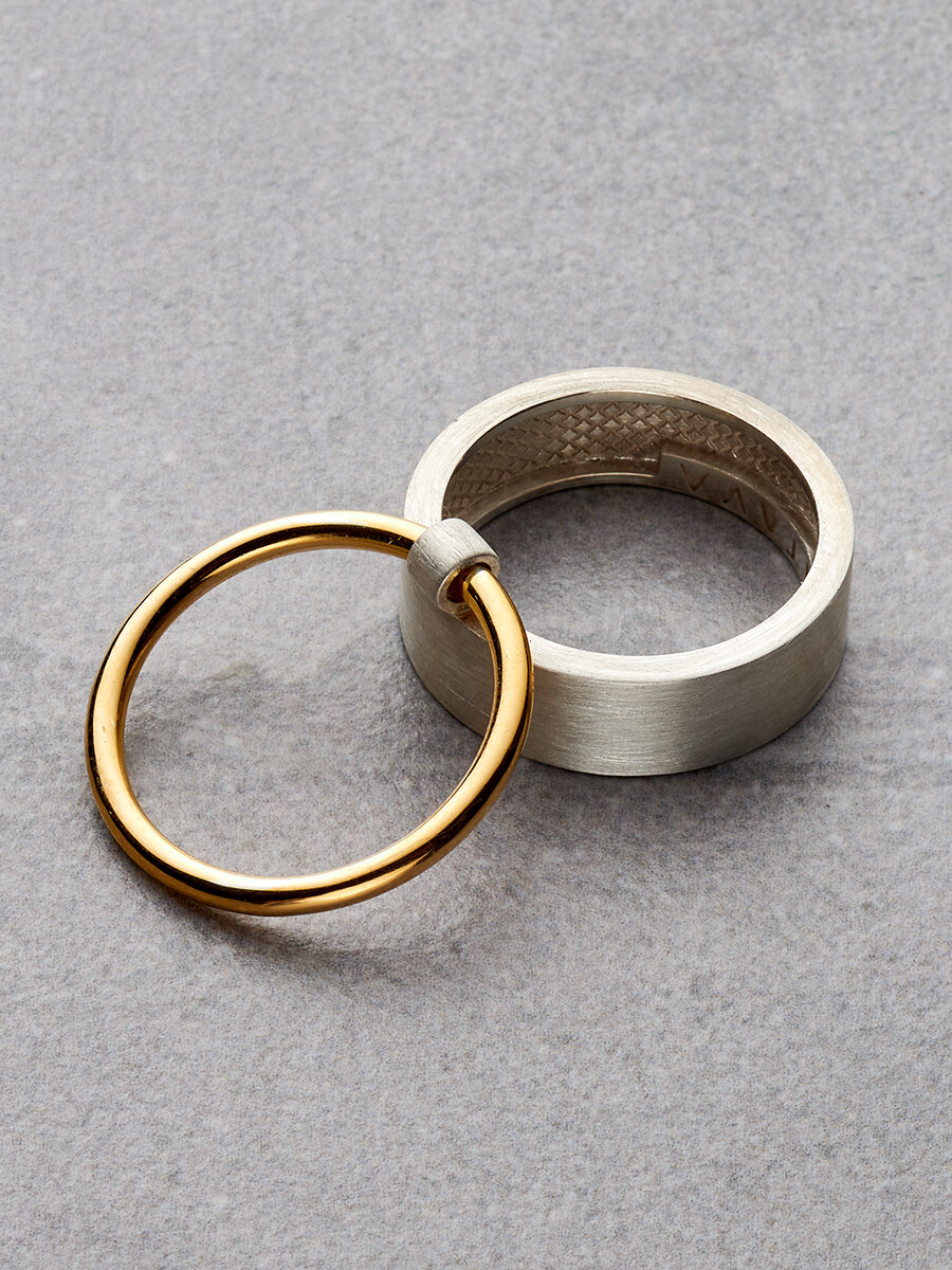 | Название модели | Двойное широкое серебряное кольцо с позолотой |