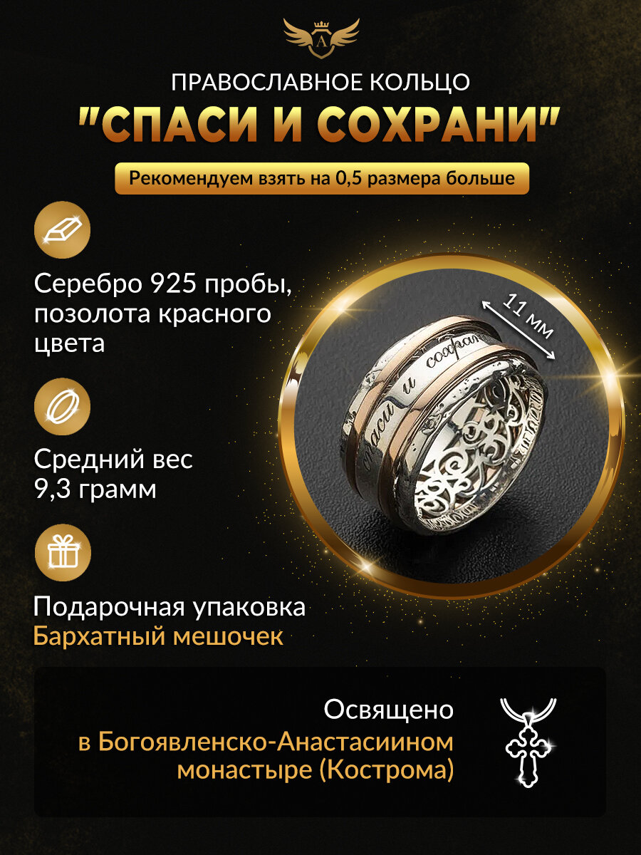 | Название модели | Кольцо серебряное православное Спаси и Сохрани широкое |