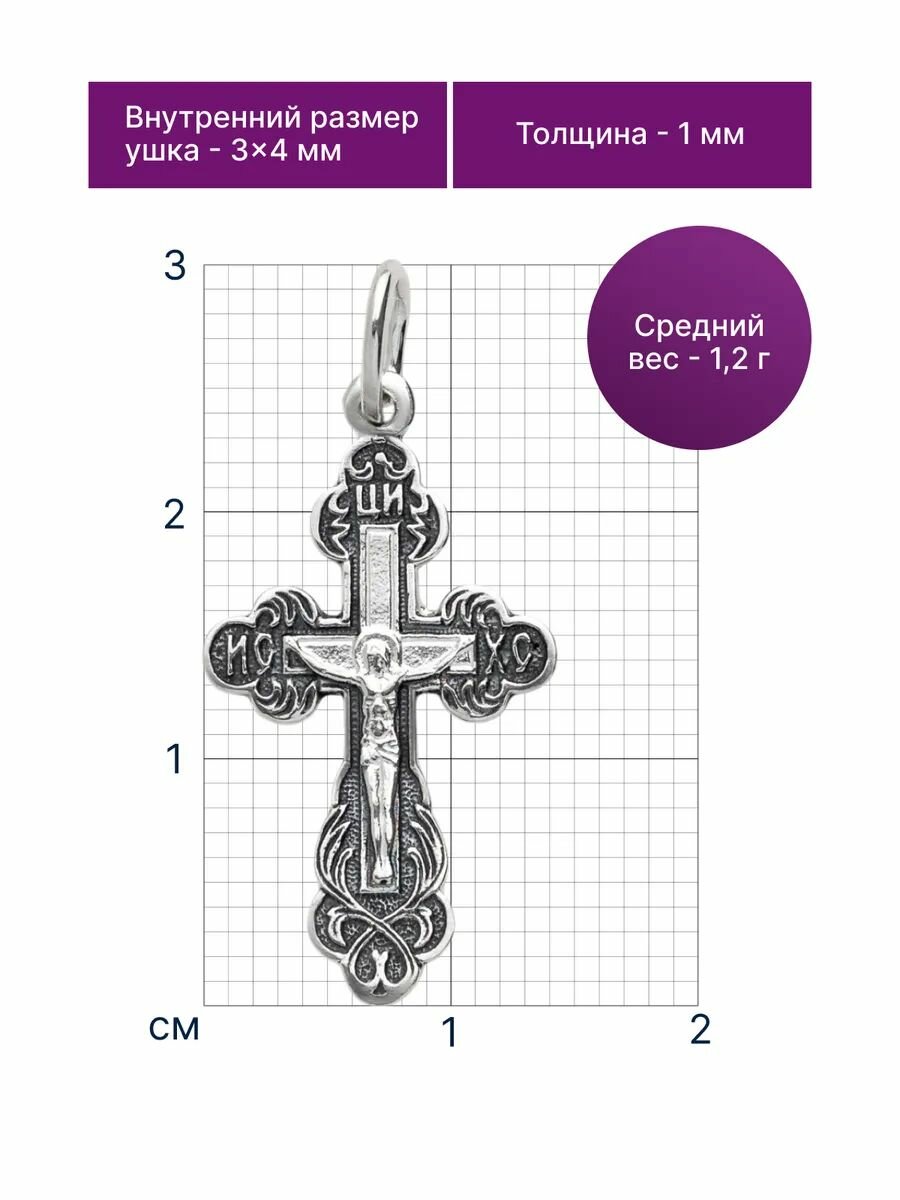 Крестик TOP CRYSTAL, серебро, 925 проба, чернение, размер 3.2 см., серебристый интересное: