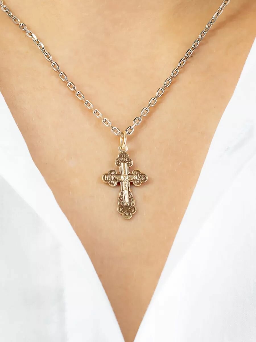 Крест нательный с Распятием Иисуса Христа и Молитвой "Спаси и Сохрани"