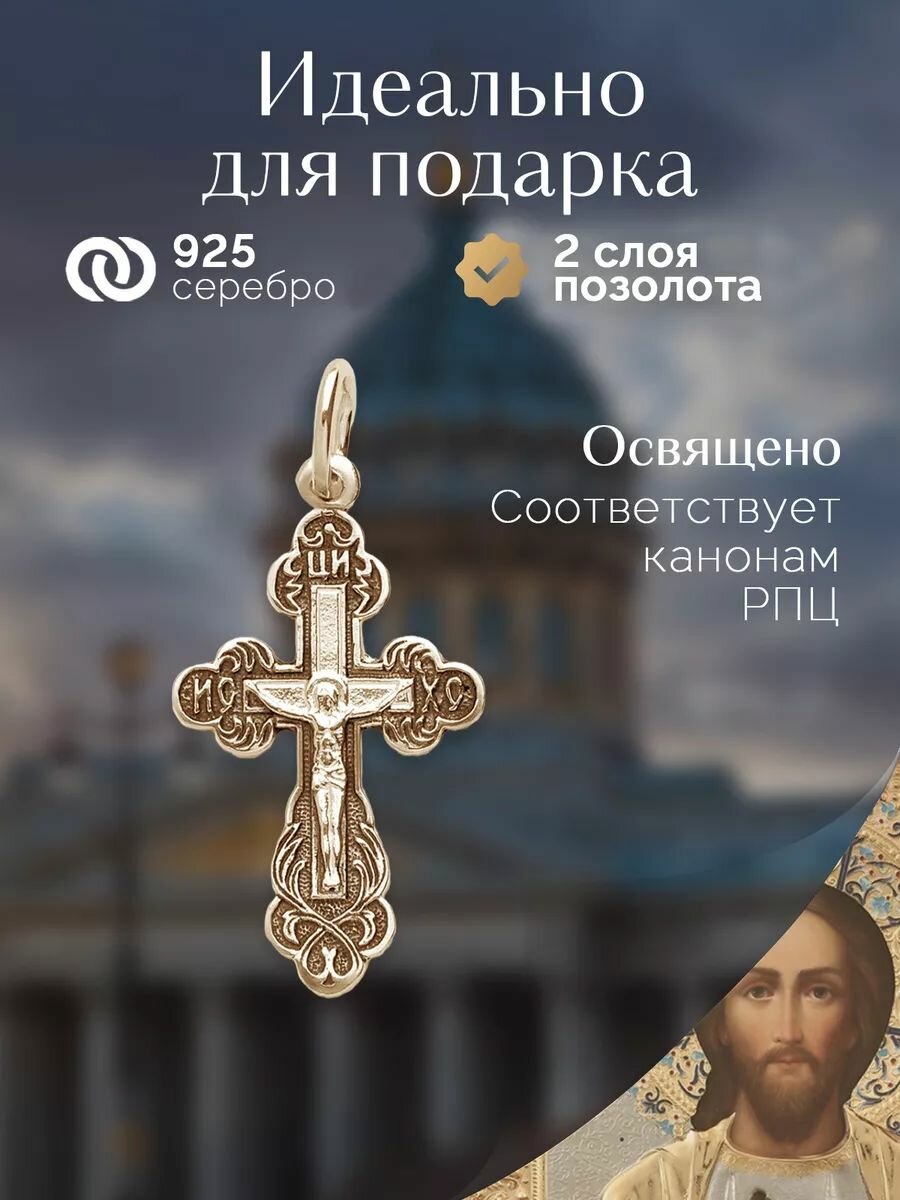 Крест серебро в позолоте с Распятием Иисуса Христа и Молитвой "Спаси и Сохрани"