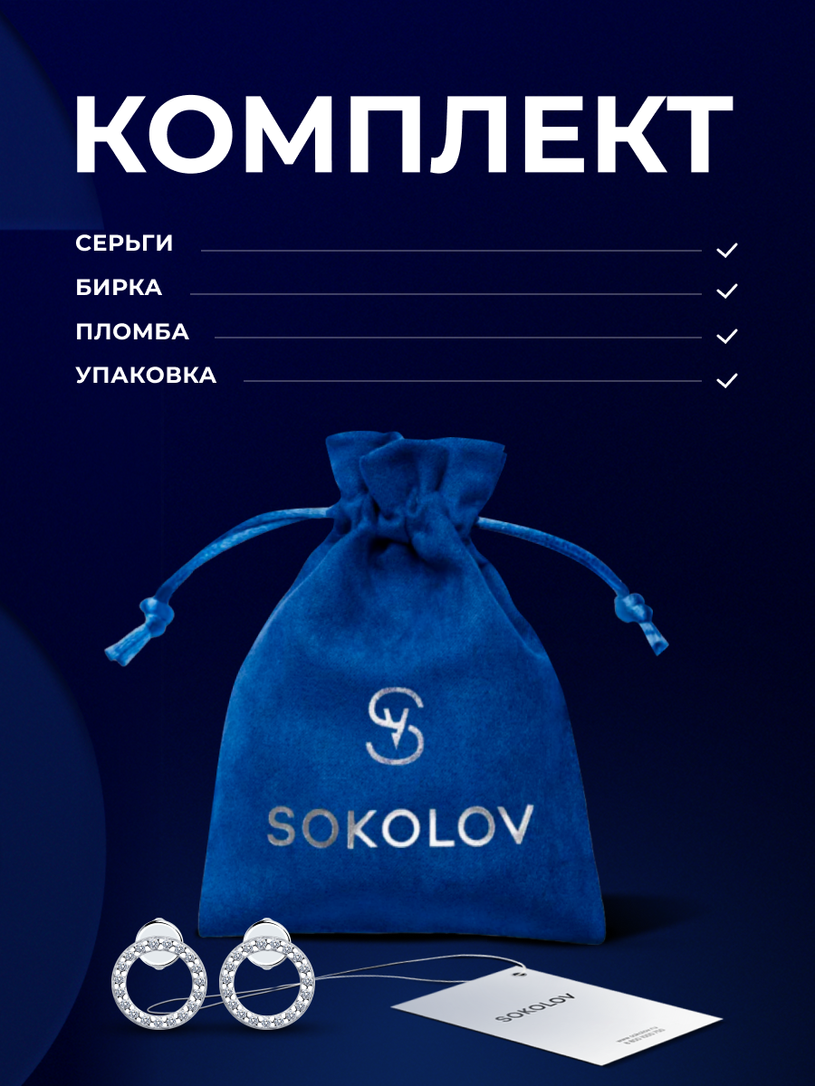 Серьги пусеты SOKOLOV, серебро, 925 проба, родирование, фианит, размер 10 мм, , бесцветный интересное: