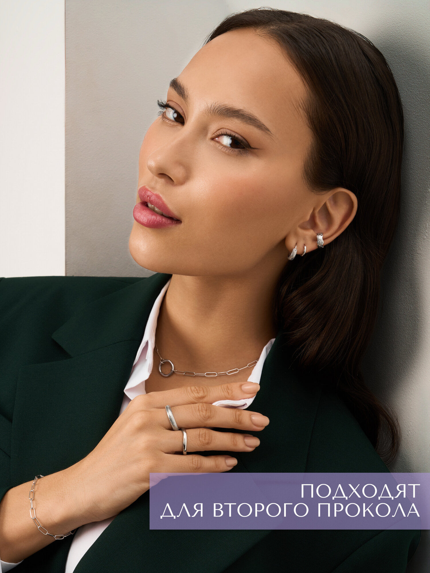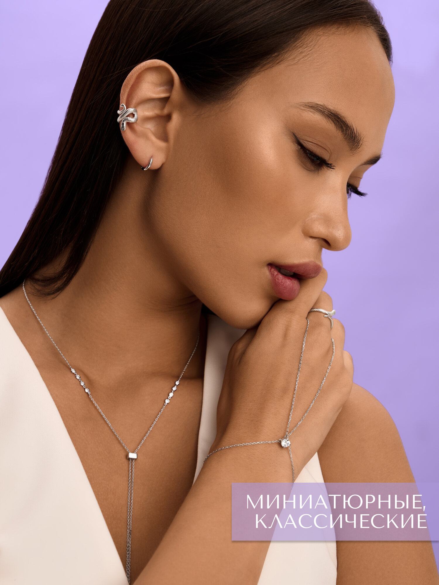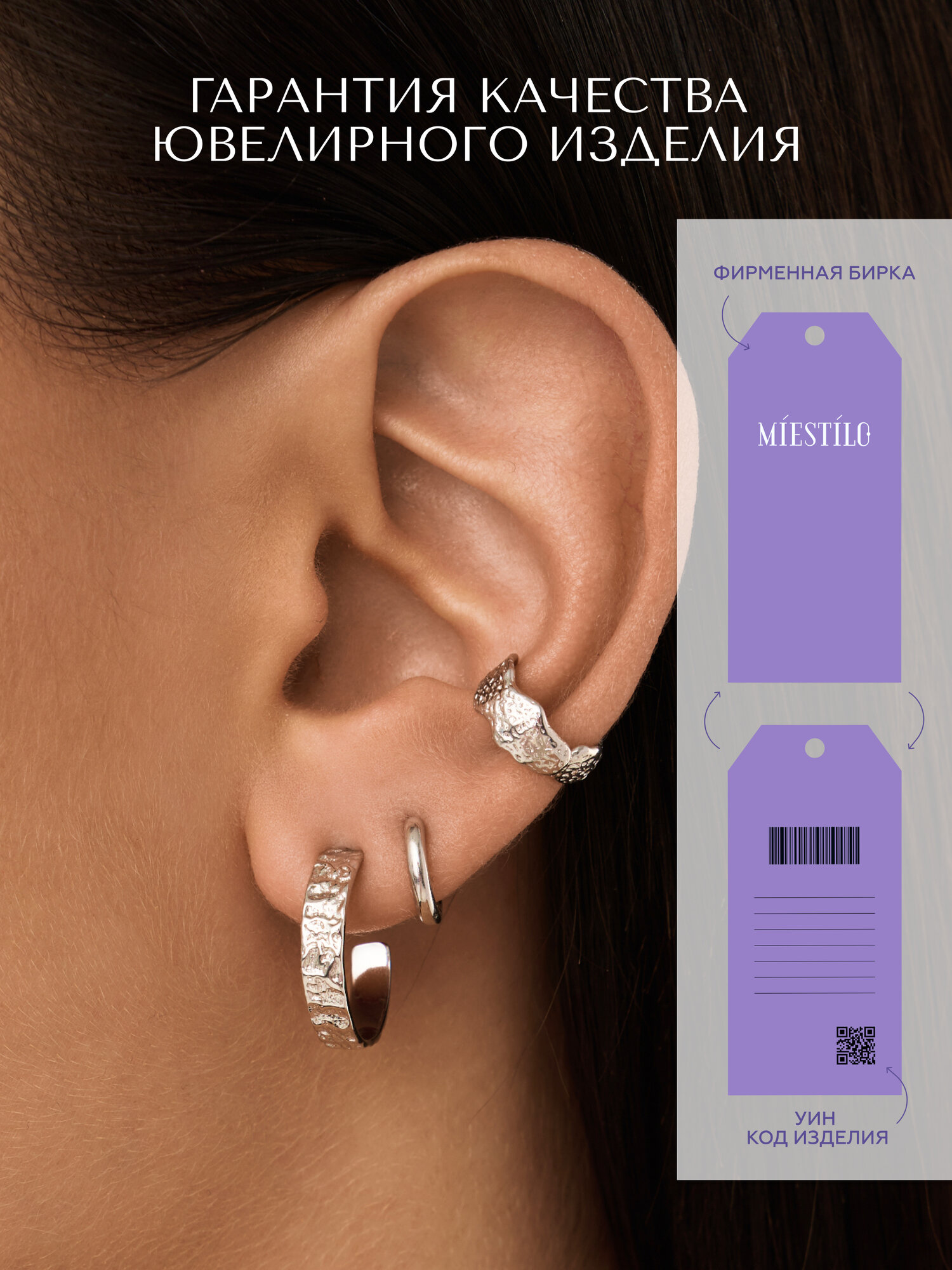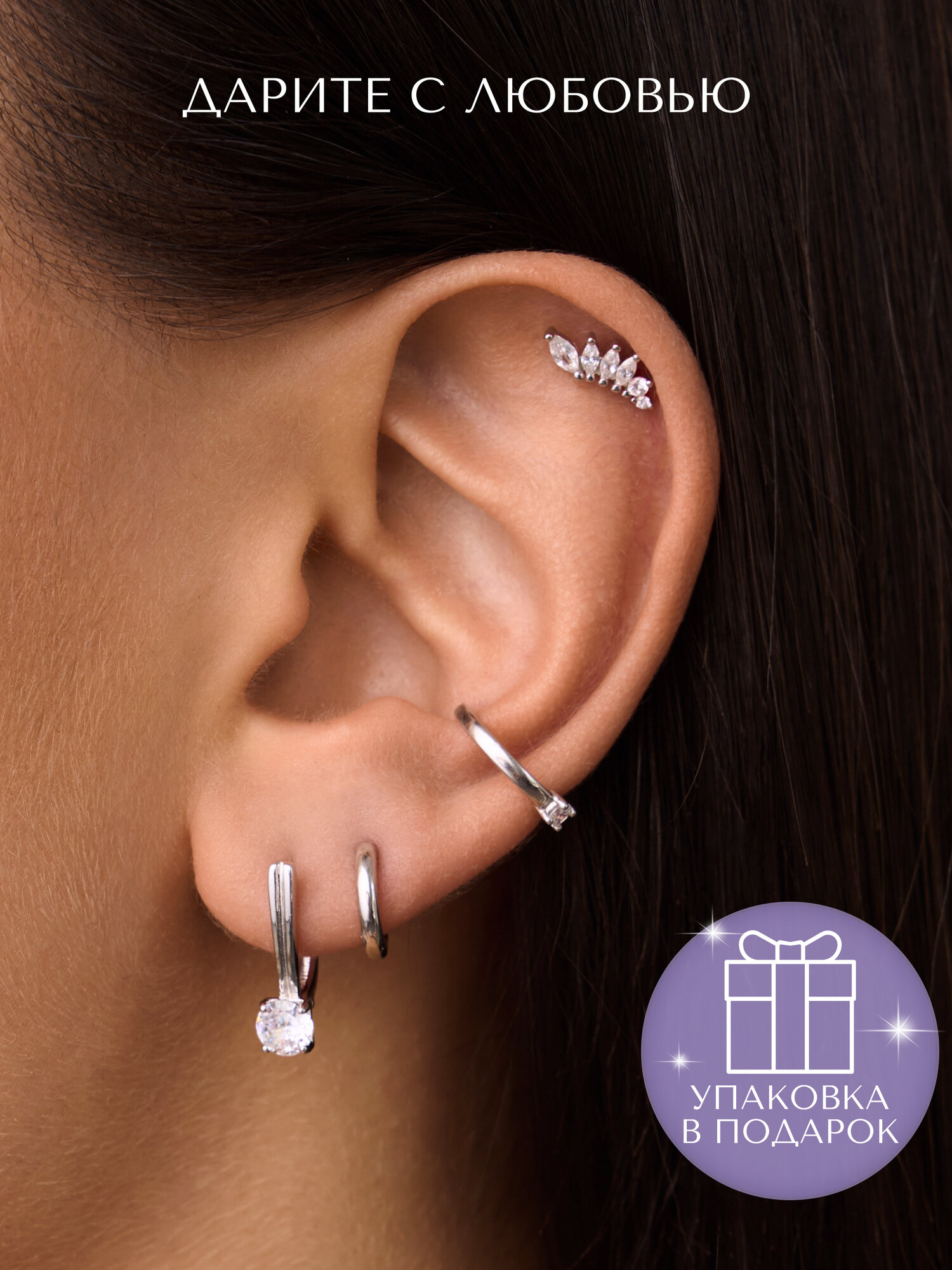 Серьги MIESTILO кафф моносерьга серебро