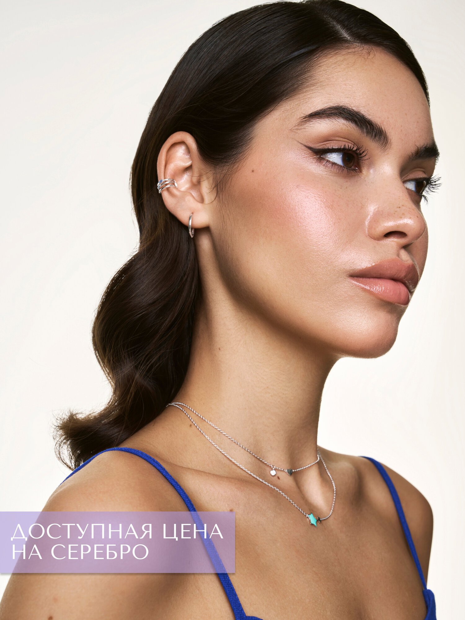 Серьги конго MIESTILO, серебро, 925 проба, родирование, размер 12 мм, , серебристый интересное: