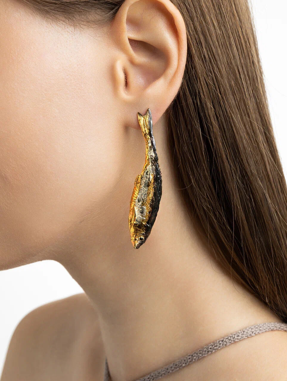 Серьги непарные Братья Глазуновы, серебро, 925 проба, золочение, фианит, размер 70 мм, длина 7 см, , серебристый интересное: