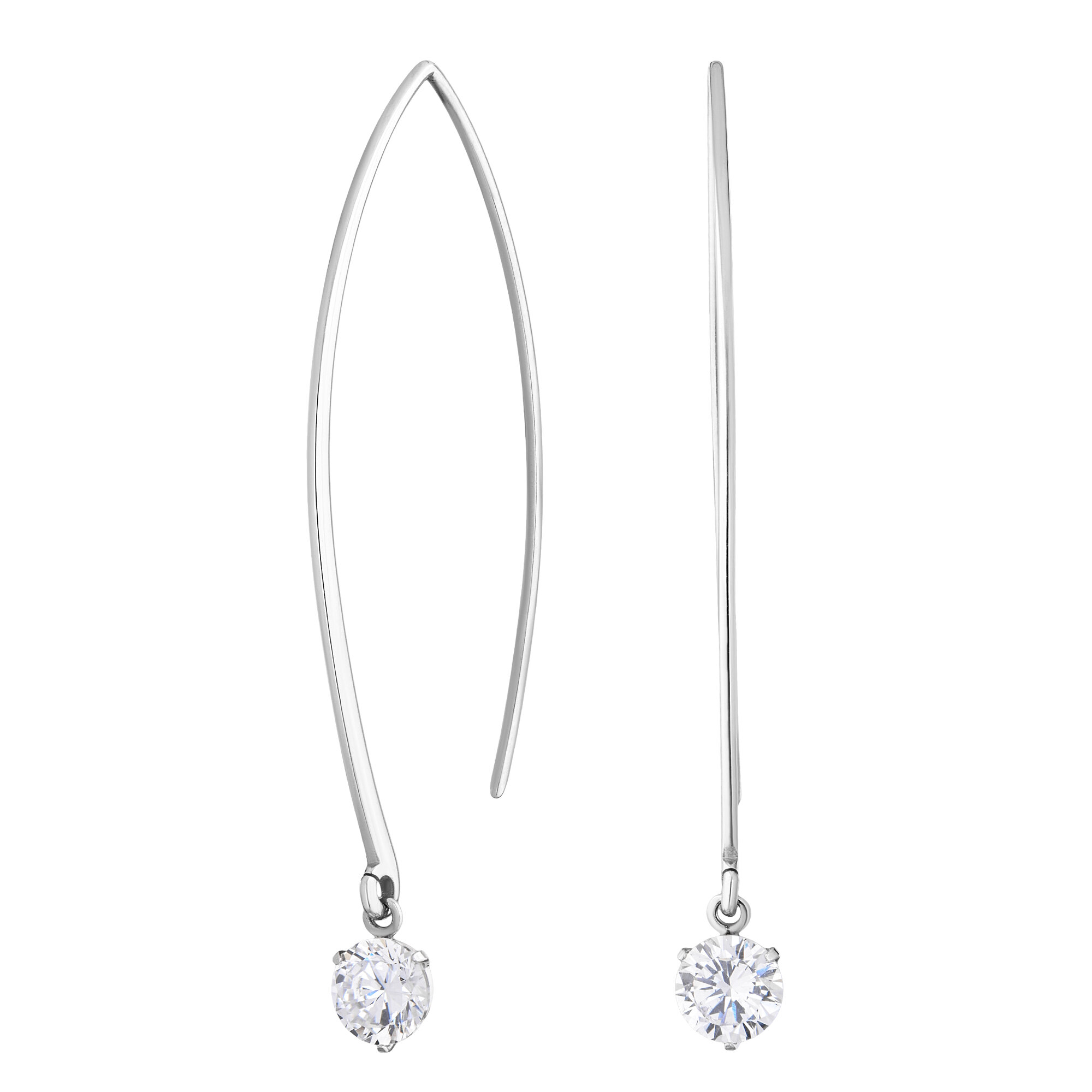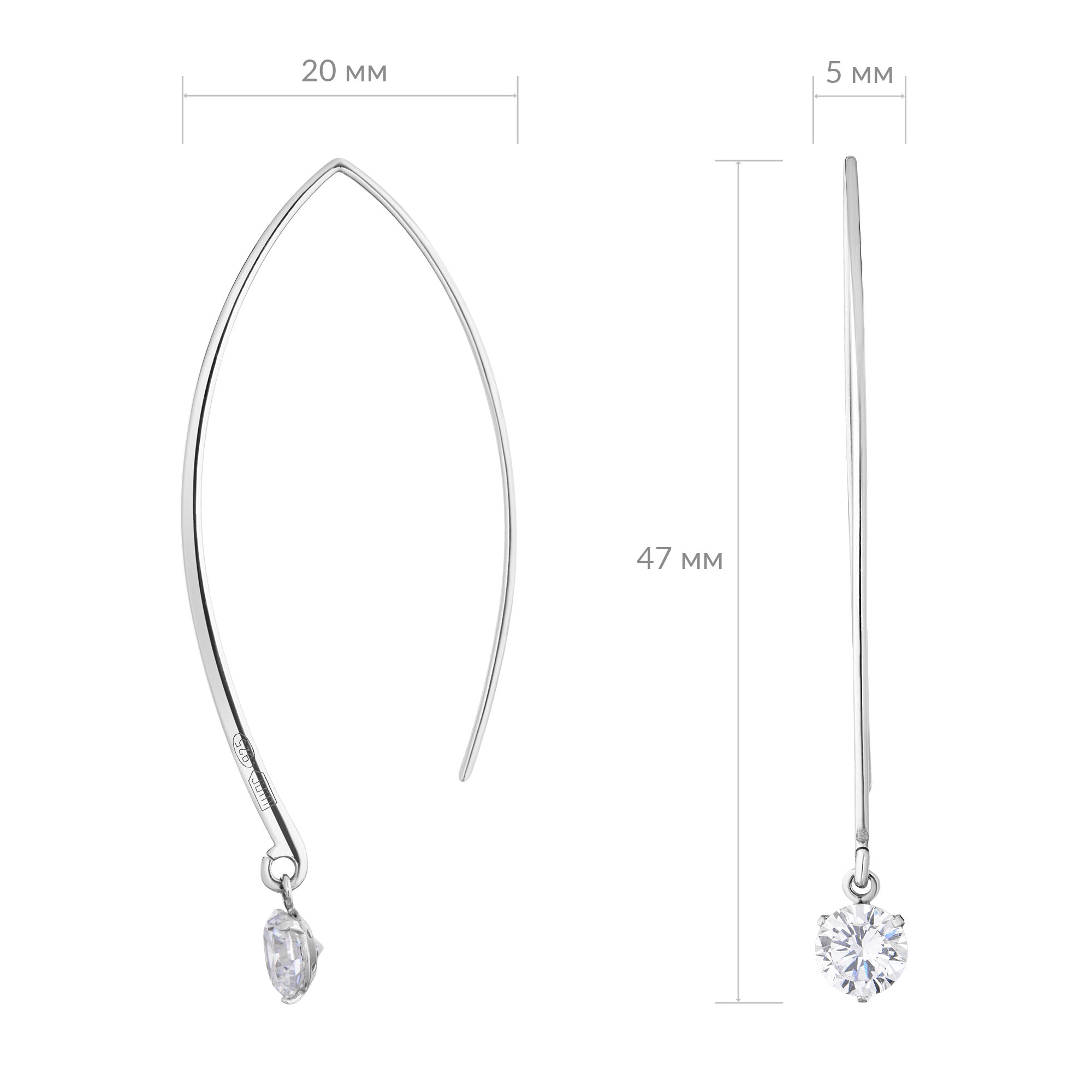 Серьги длинные висячие протяжки с фианитами, продевки с камнями, минимализм, ср.вес изделия 1,73 гр, арт. 2128871/91