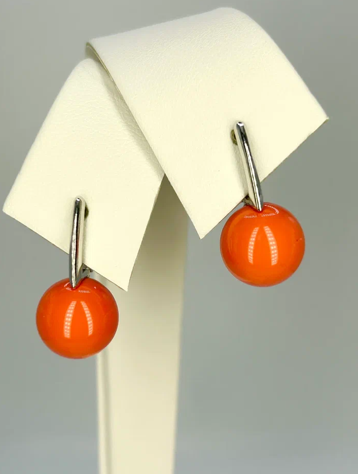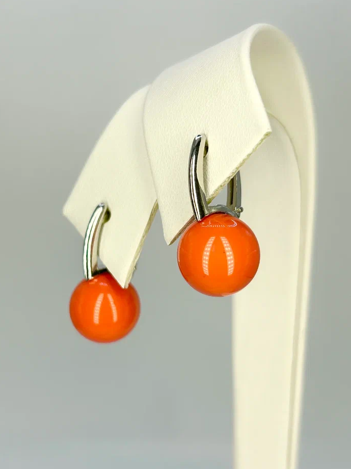 Серьги с кораллом "Гири" серебро 925 Аргентум