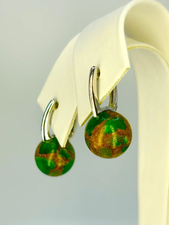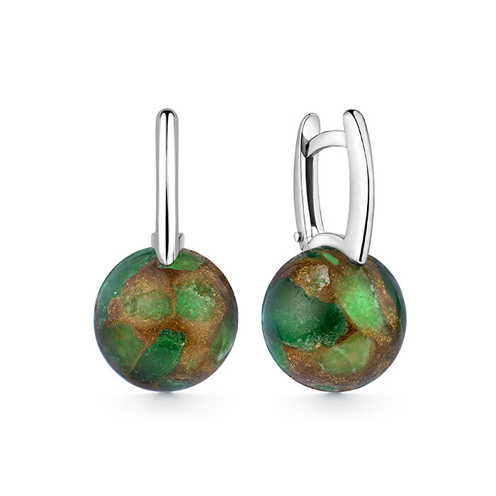 Серьги с авантюрином "Гири" серебро 925 Argentum