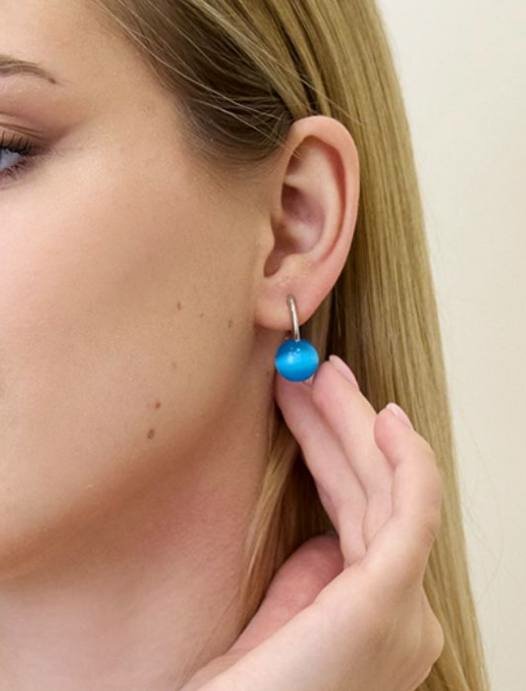 Серьги с голубым кошачьим глазом "Гири" серебро 925