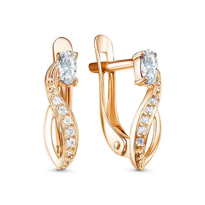 Серьги с фианитами "Бесконечность" серебро золоченое 925