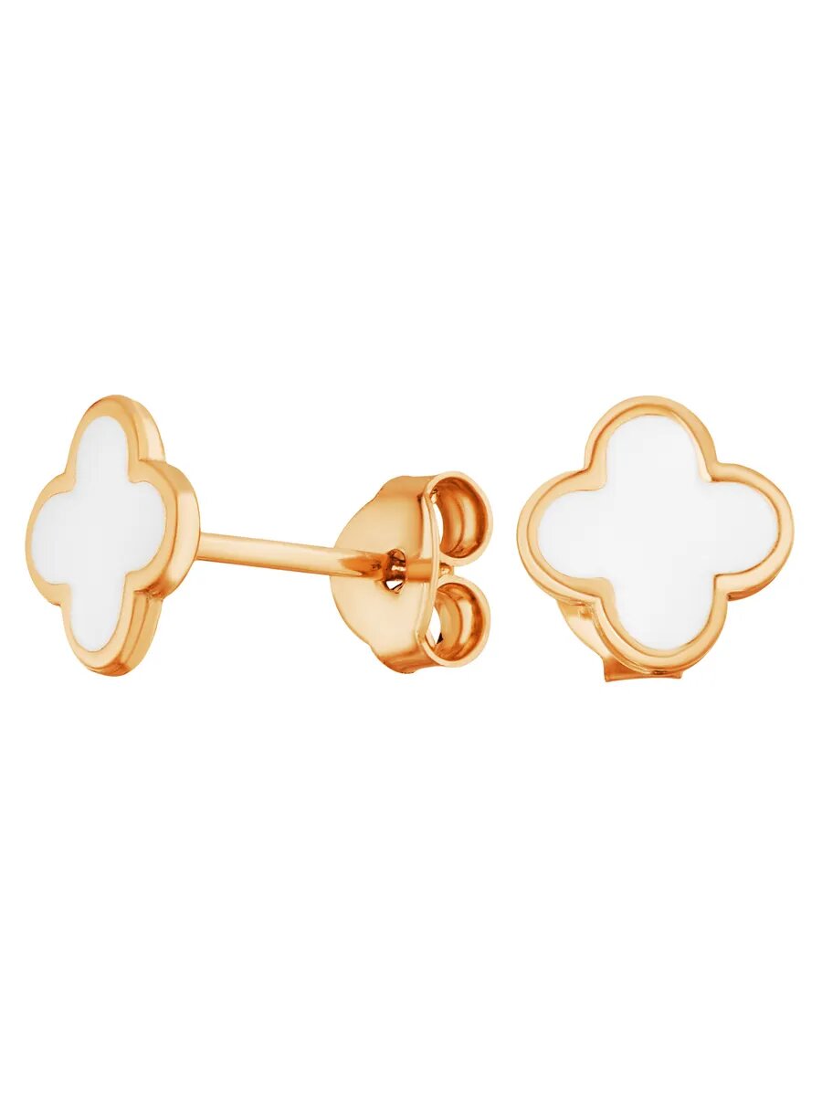 Серьги-пусеты серебряные 925 пробы с эмалью Клевер, сережки-гвоздики Четырехлистник, ср.вес изделия 0,93 гр, арт. 2027944/91пбг Ювелир Карат